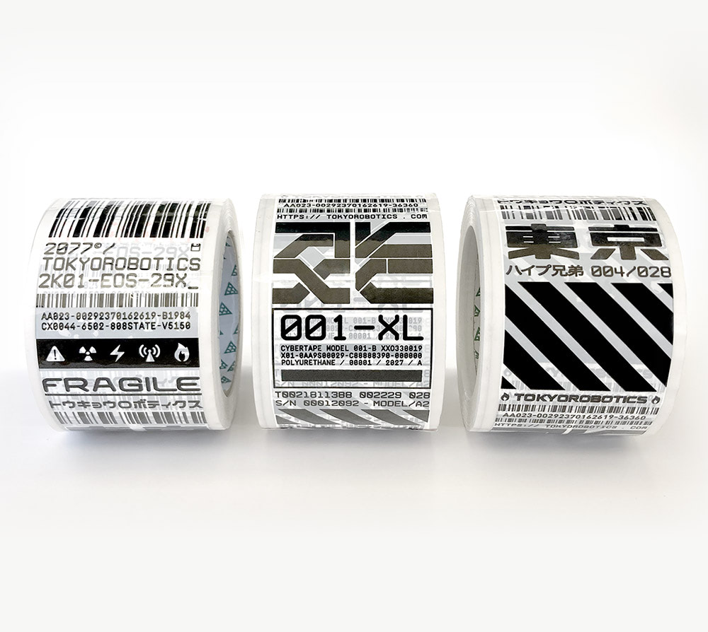 Limited-Edition TOKYO-ROBOTICS™ futuristic adhesive tape with unique cyberpunk-inspired graphics in two differnt sizes.