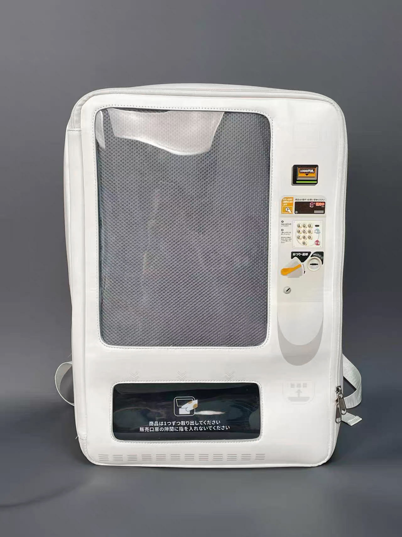 The Vending Machine Backpack is a collector’s transport bag inspired by the look of the popular Japanese Jidouhanbaiki (自動販売機) vending machines.