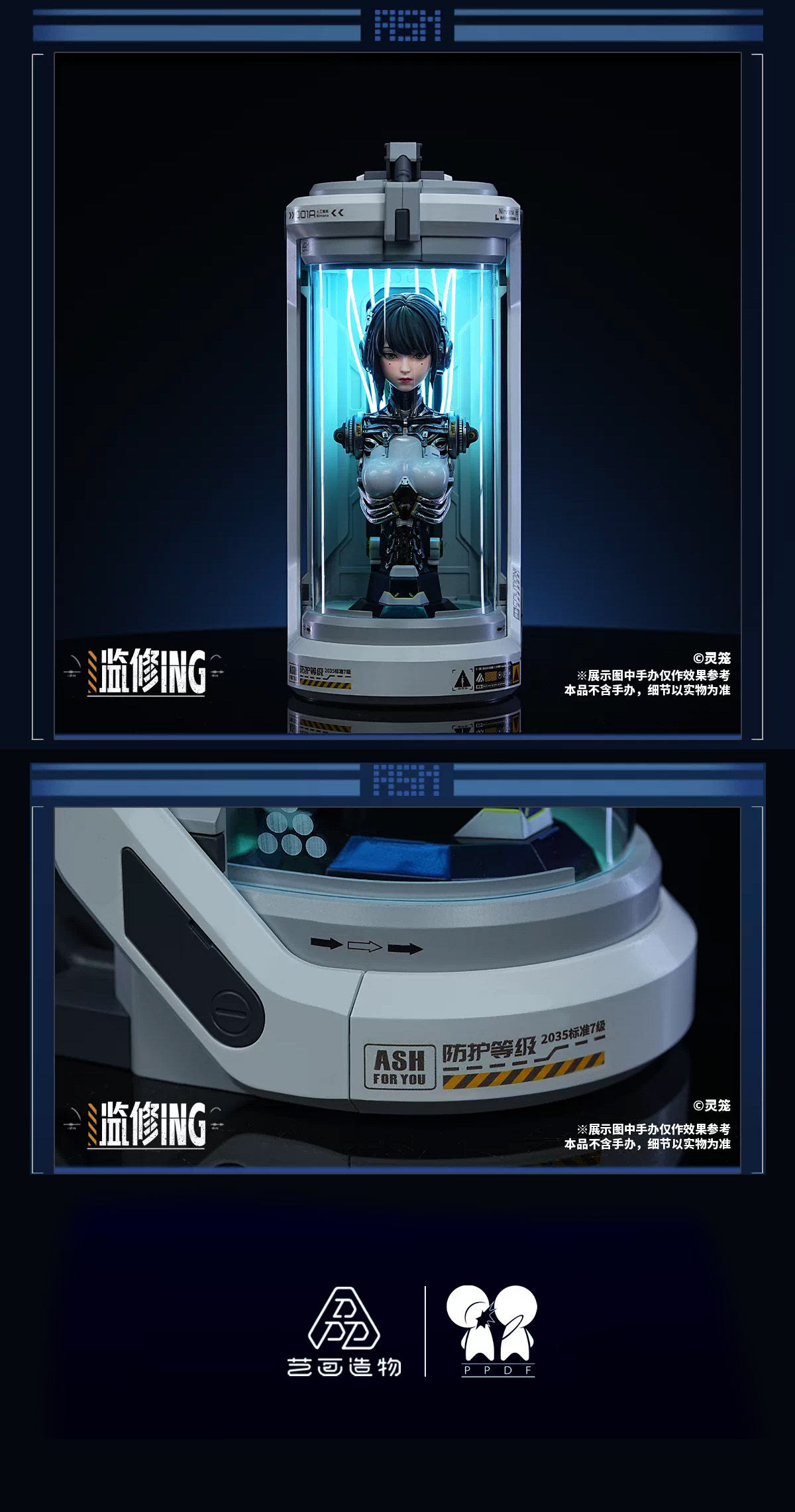 Especially designed for the ASH Bust Figure (sold separately) this display futuristic lines and internal RGB illumination create a striking environment that draws attention to the figure inside.