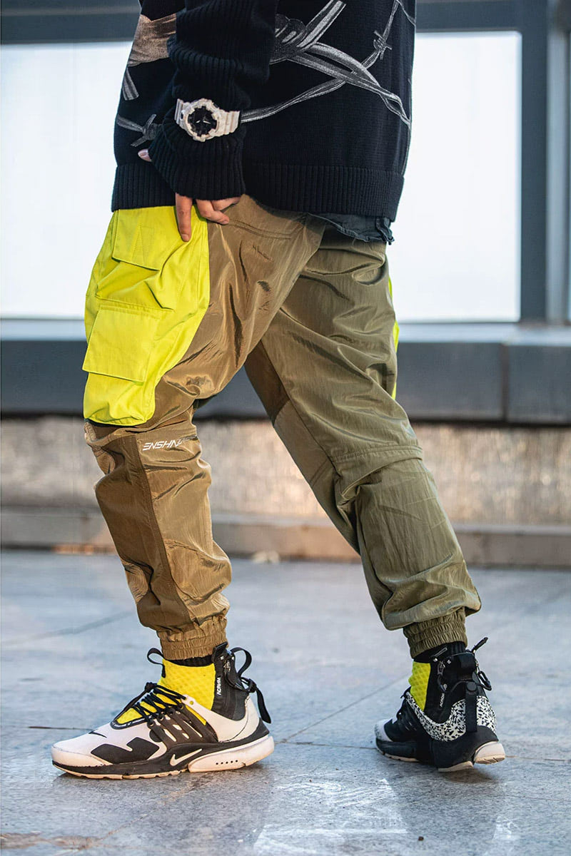 Techwear Pants by ENSHADOWER x JOYSTUDIO featuring large side pockets and built-in adjustment cords.
