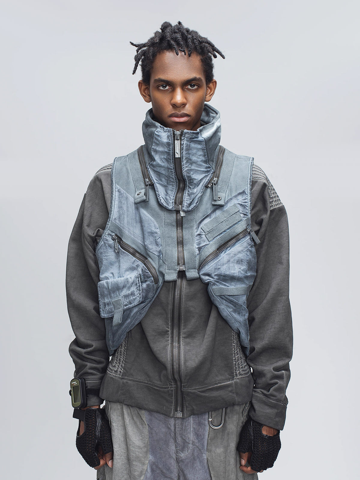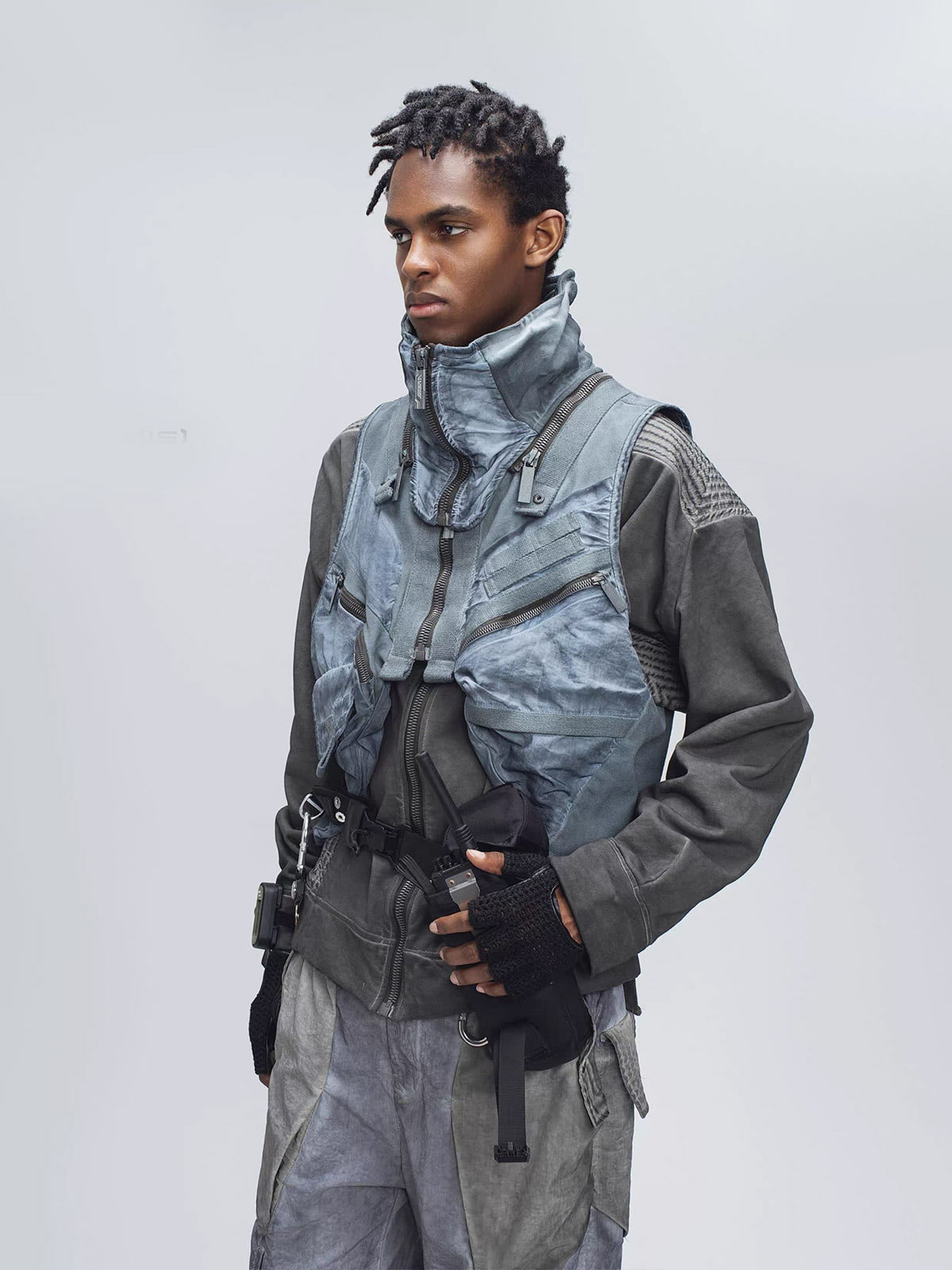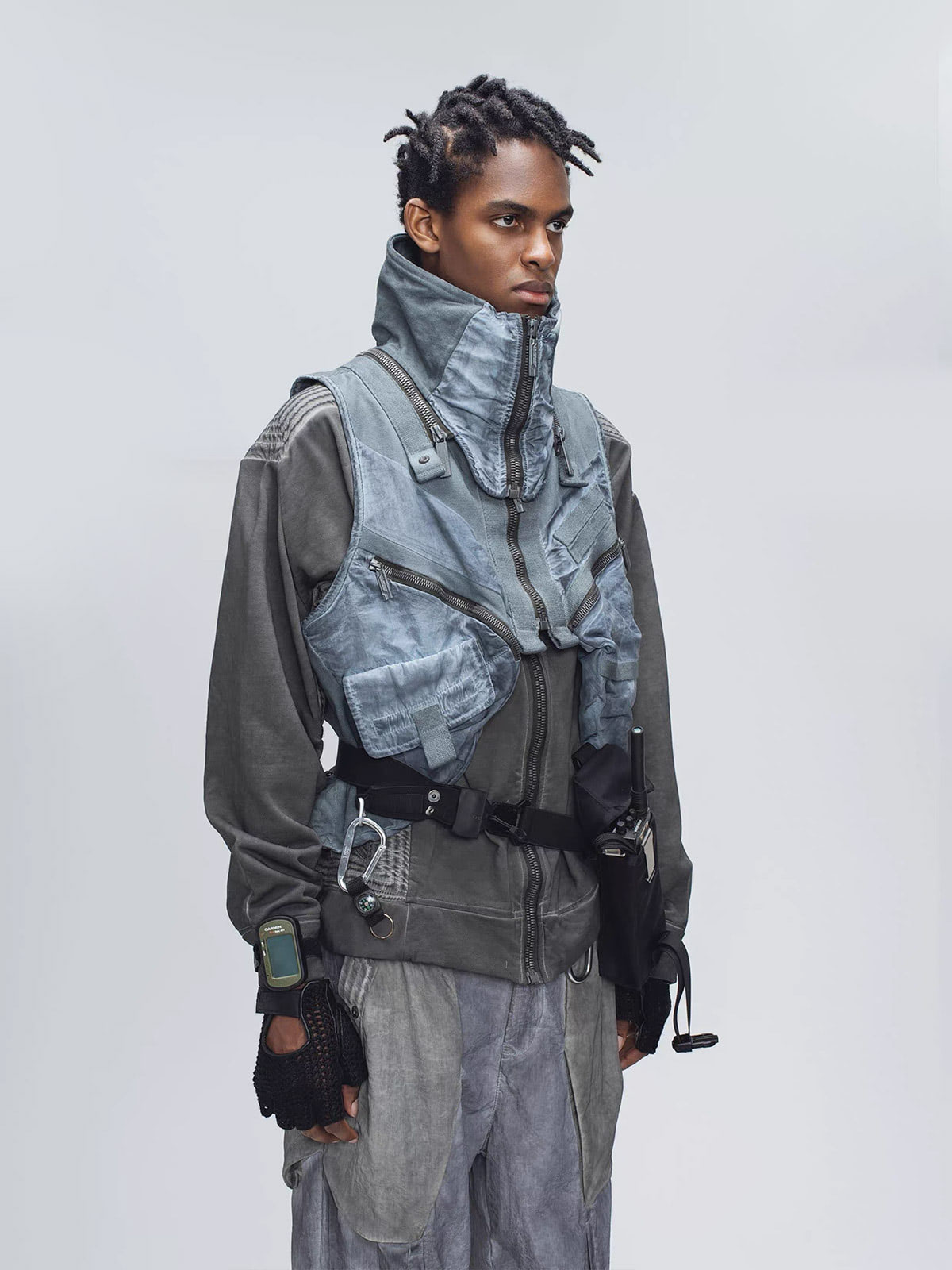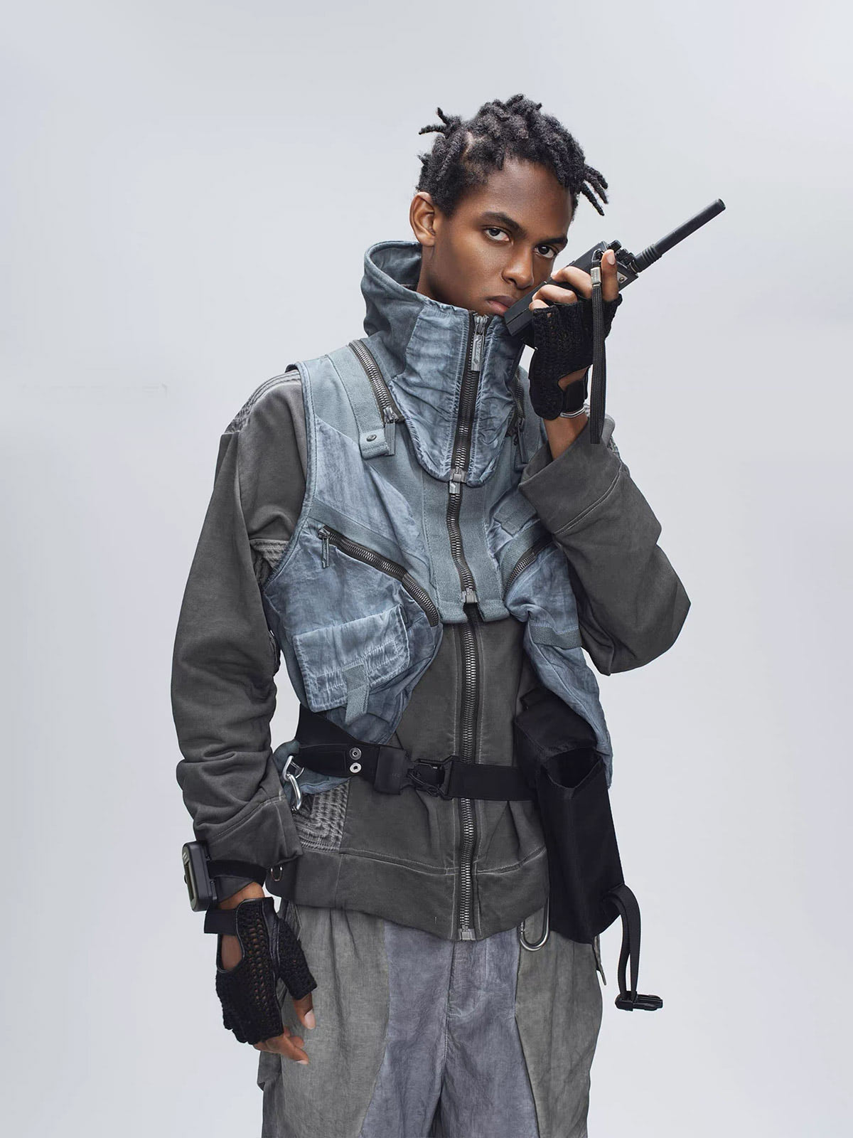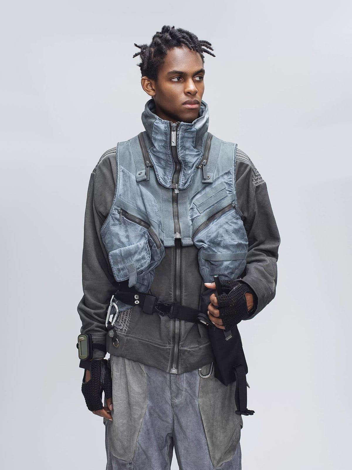 Featuring a detachable Stand-Up Collar and 3D pockets, this futuristic vest fuses unique tailoring, asymmetrical design and practicality.