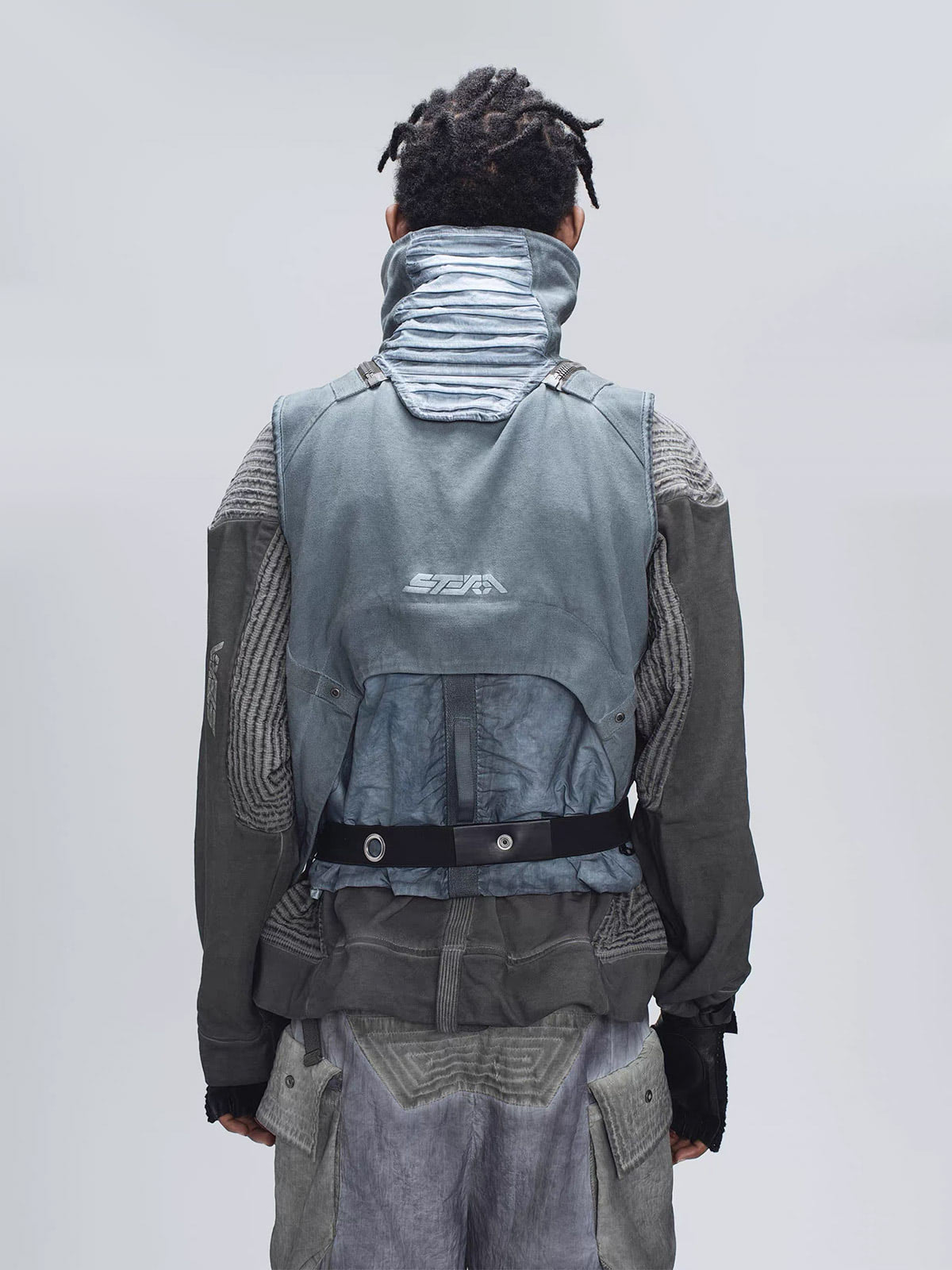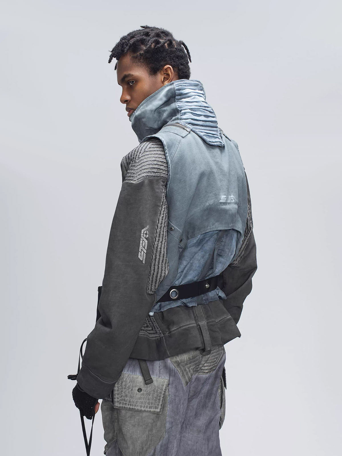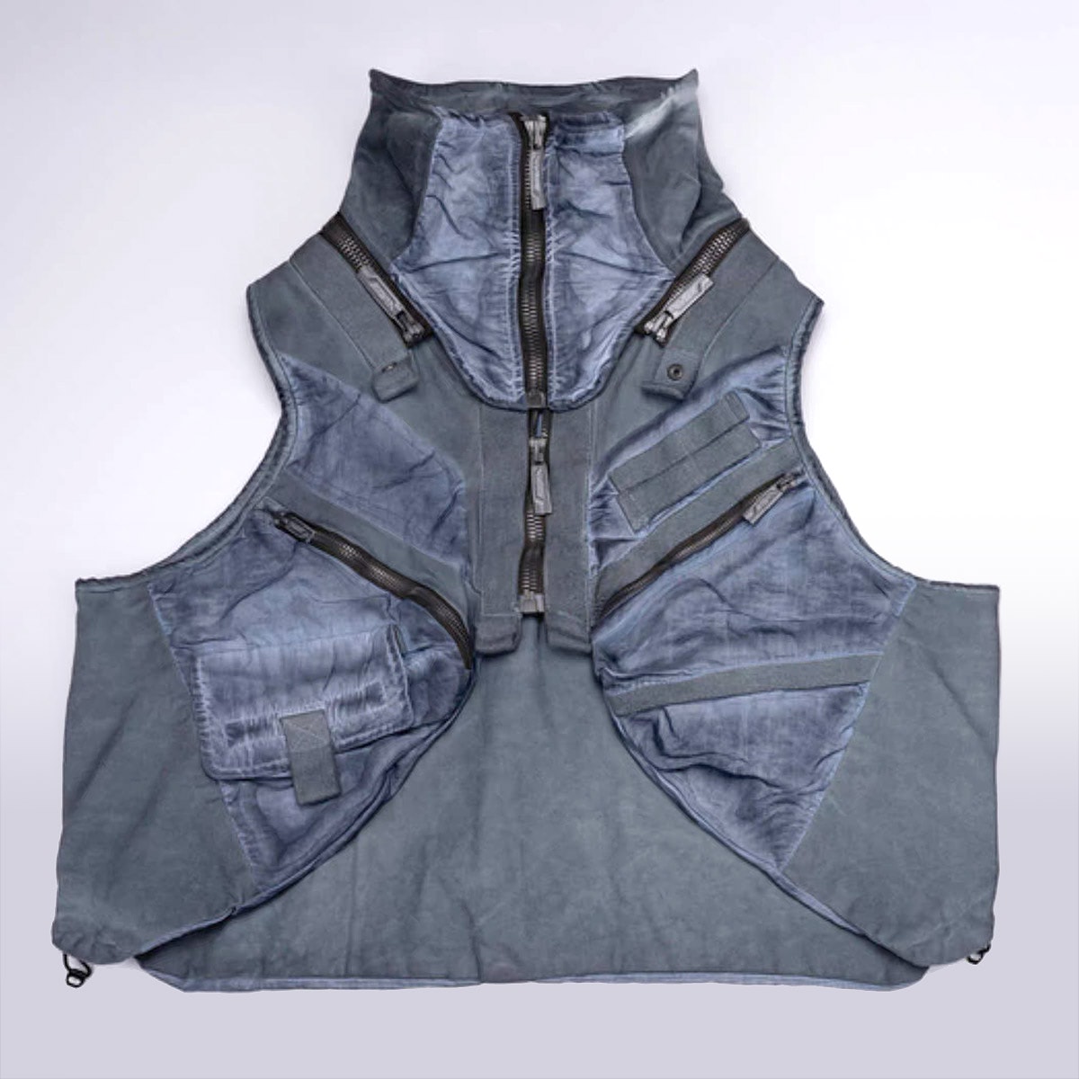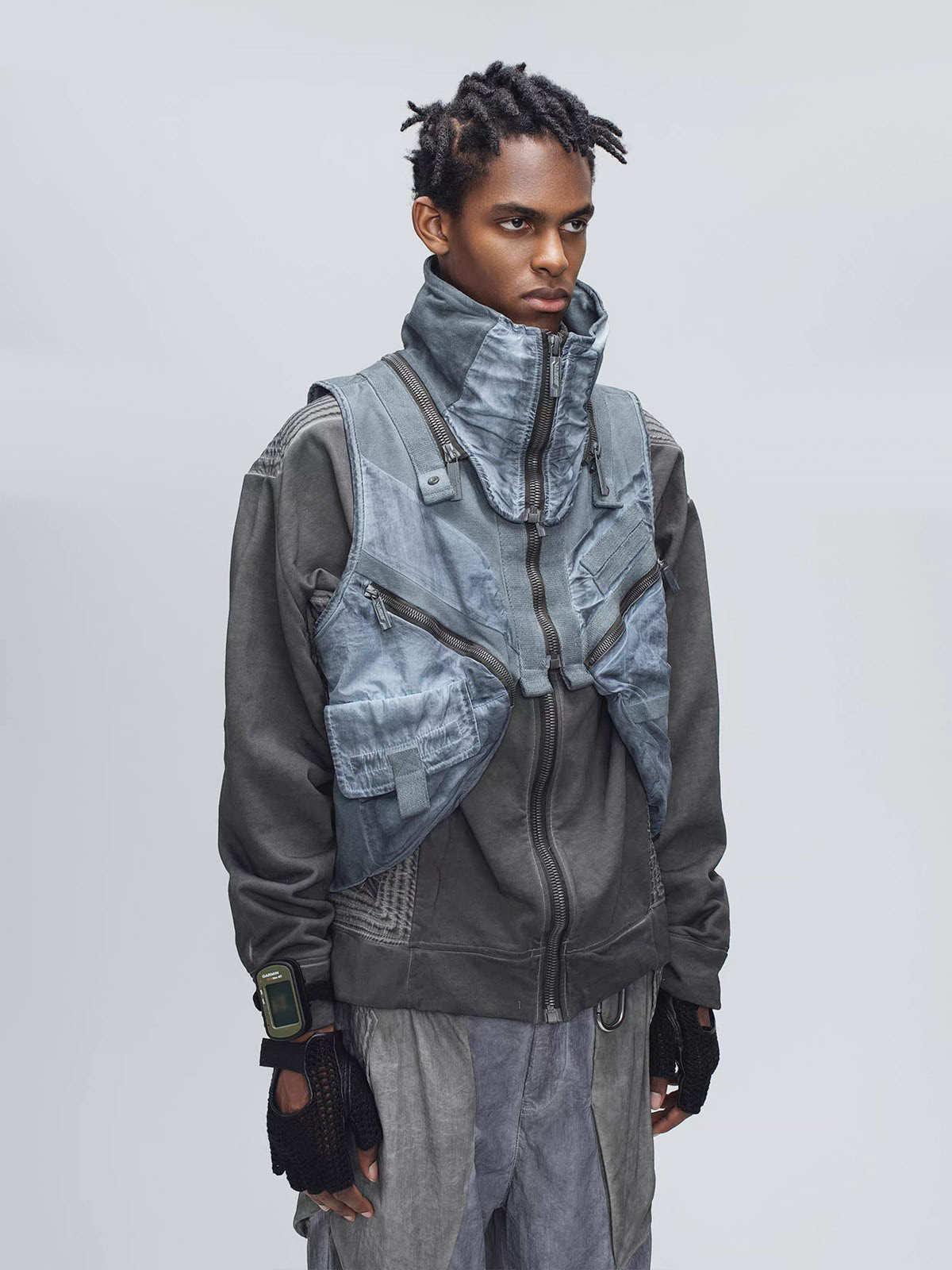 Featuring a detachable Stand-Up Collar and 3D pockets, this futuristic vest fuses unique tailoring, asymmetrical design and practicality.