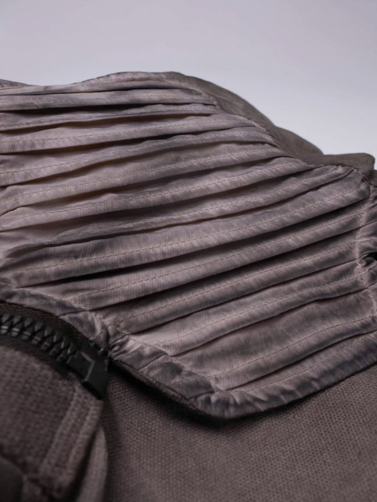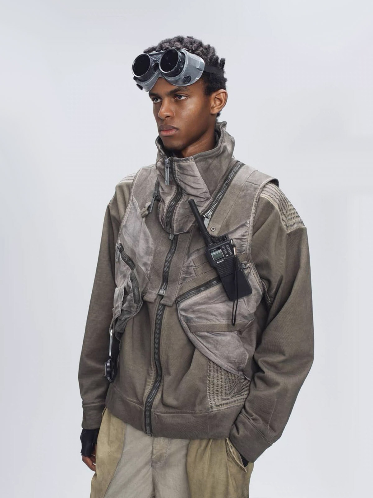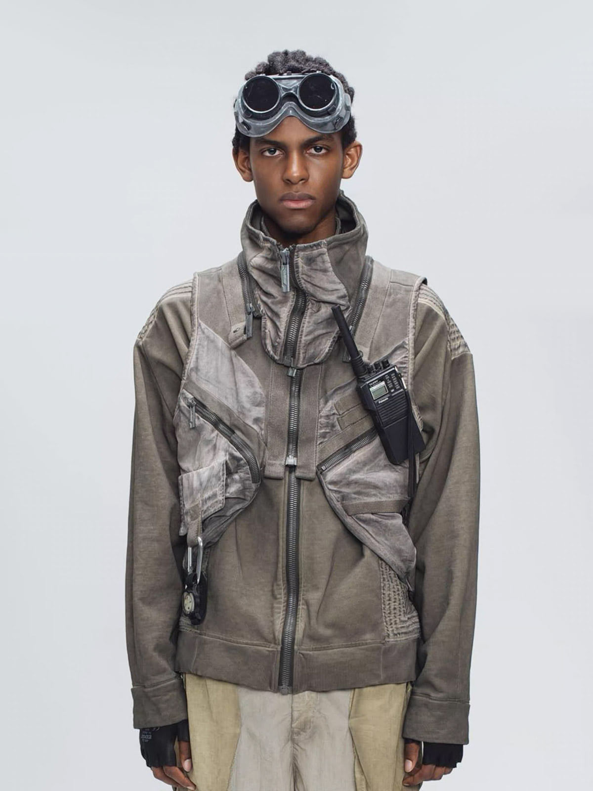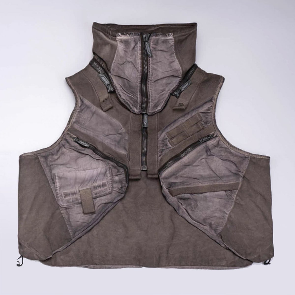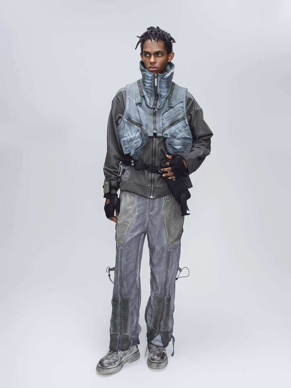 Featuring a detachable Stand-Up Collar and 3D pockets, this futuristic vest fuses unique tailoring, asymmetrical design and practicality.