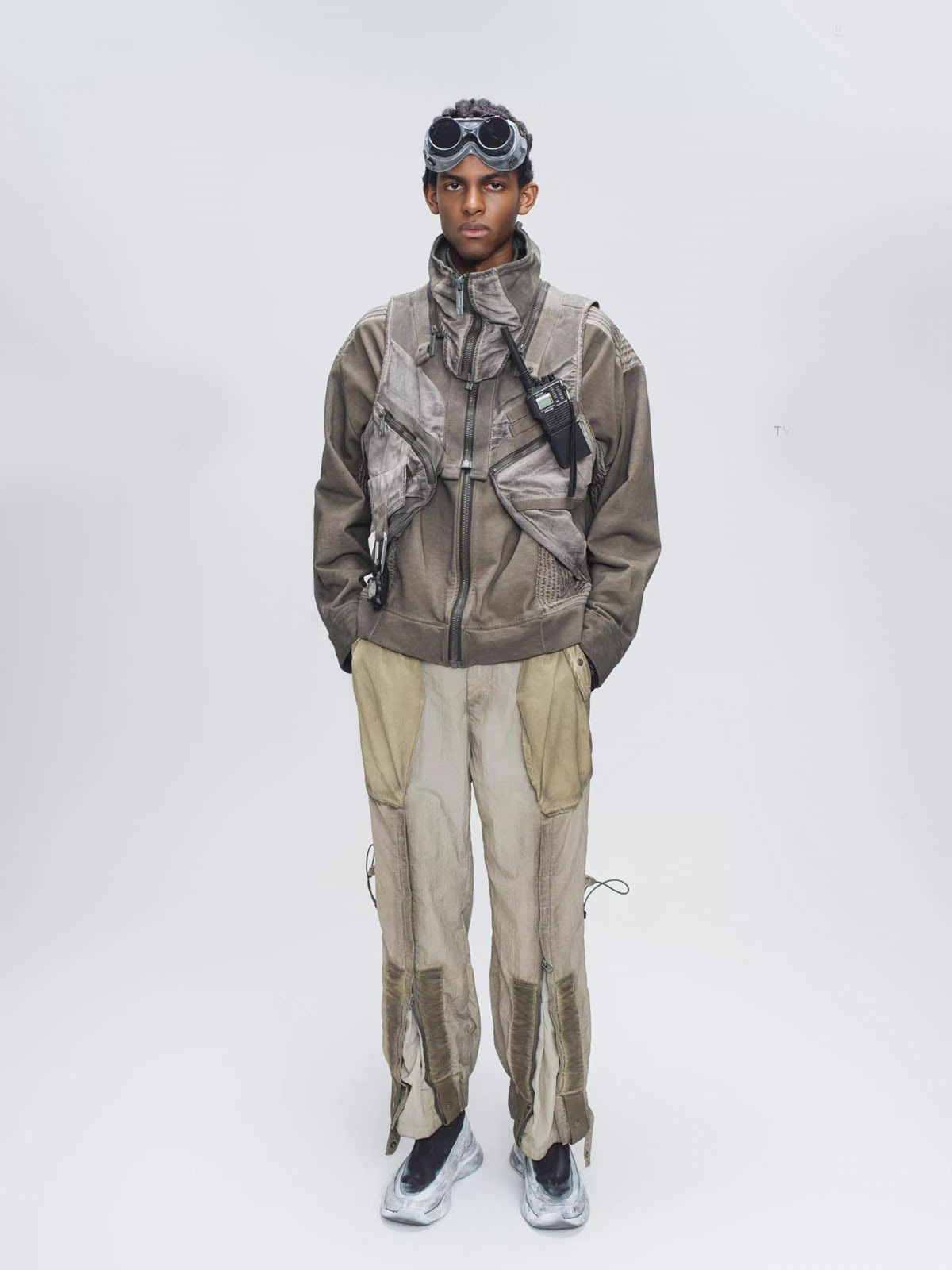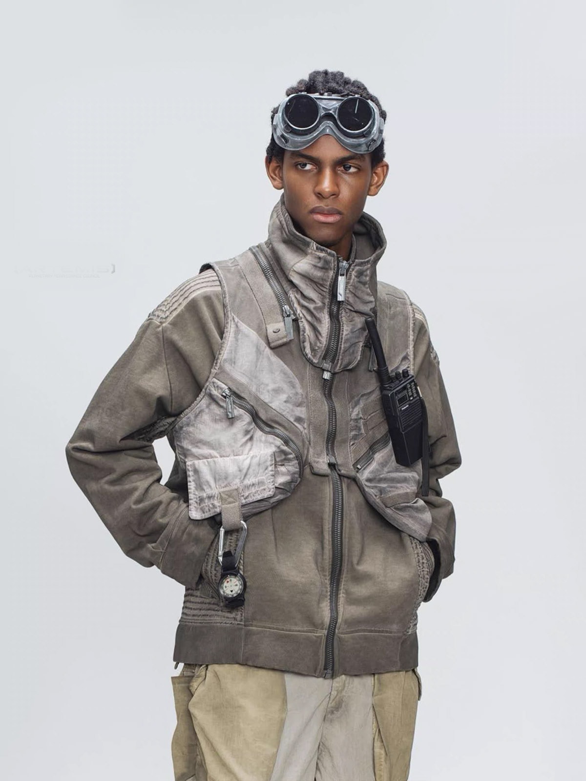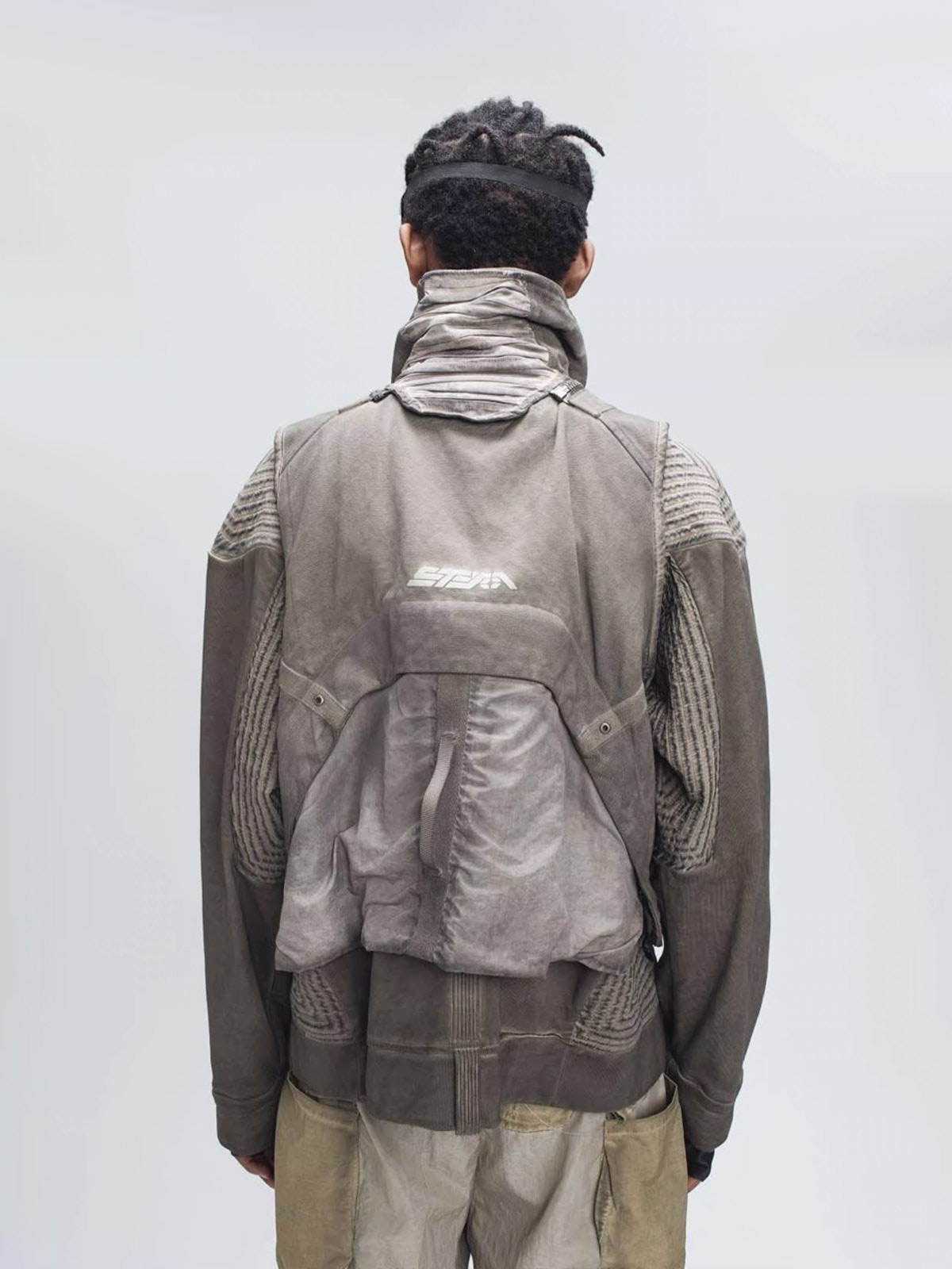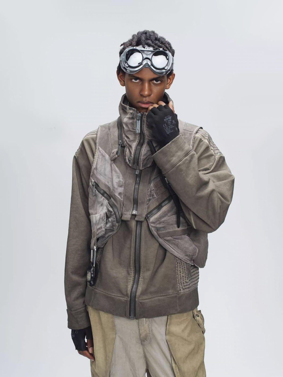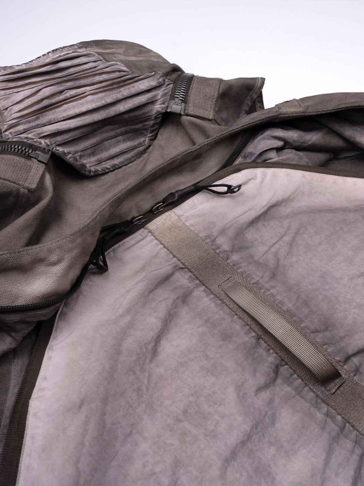 Functional Jacket in wasteland style inspired by the aesthetics of Dune, Blade Runner and Star Wars.