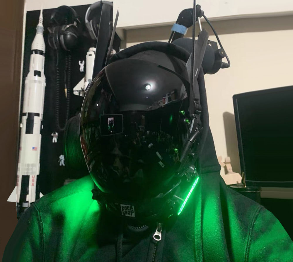 2025 Edition Cyberpunk Mask (Codename “ANUBIS”) handcrafted with premium hardware, featuring dual green LED modules, adjustable flaps and a set of exclusive customization stickers.