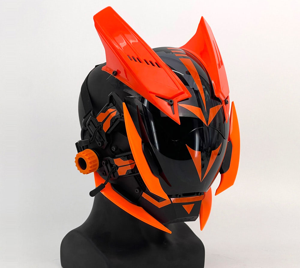 Cyberpunk Mask S1 with circular COB Light and top horns in orange or black.