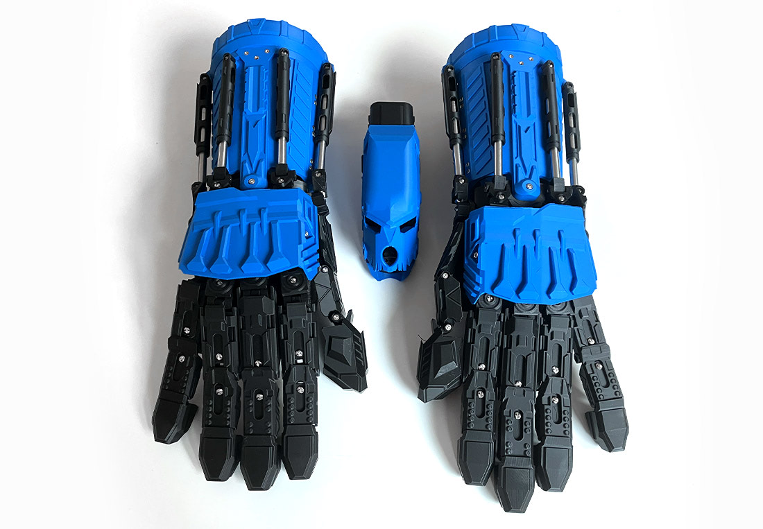 [Special Edition] Pair of Mechanical Armor featuring an add-on Fireball Shooter, fully articulated joints in a beautiful blue and black color scheme.