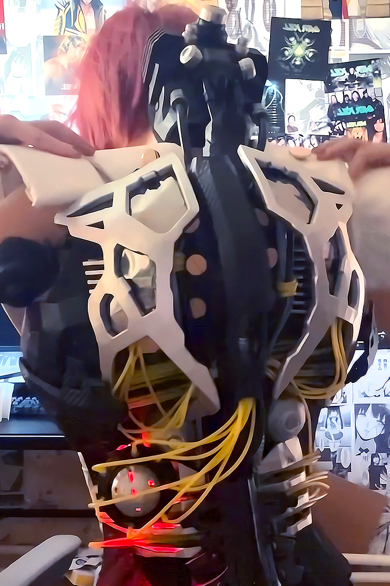 This fan-made wearable consists of a back unit and a pair of arm extensions that connect to the back.