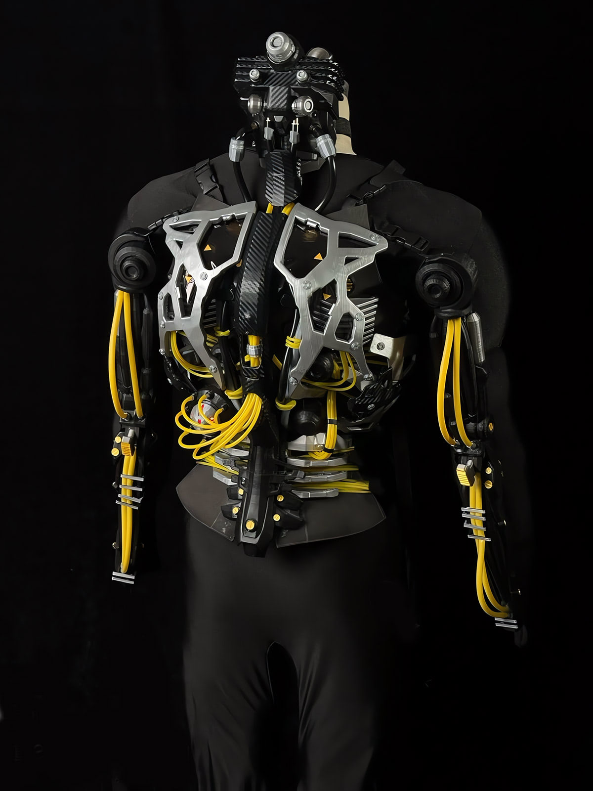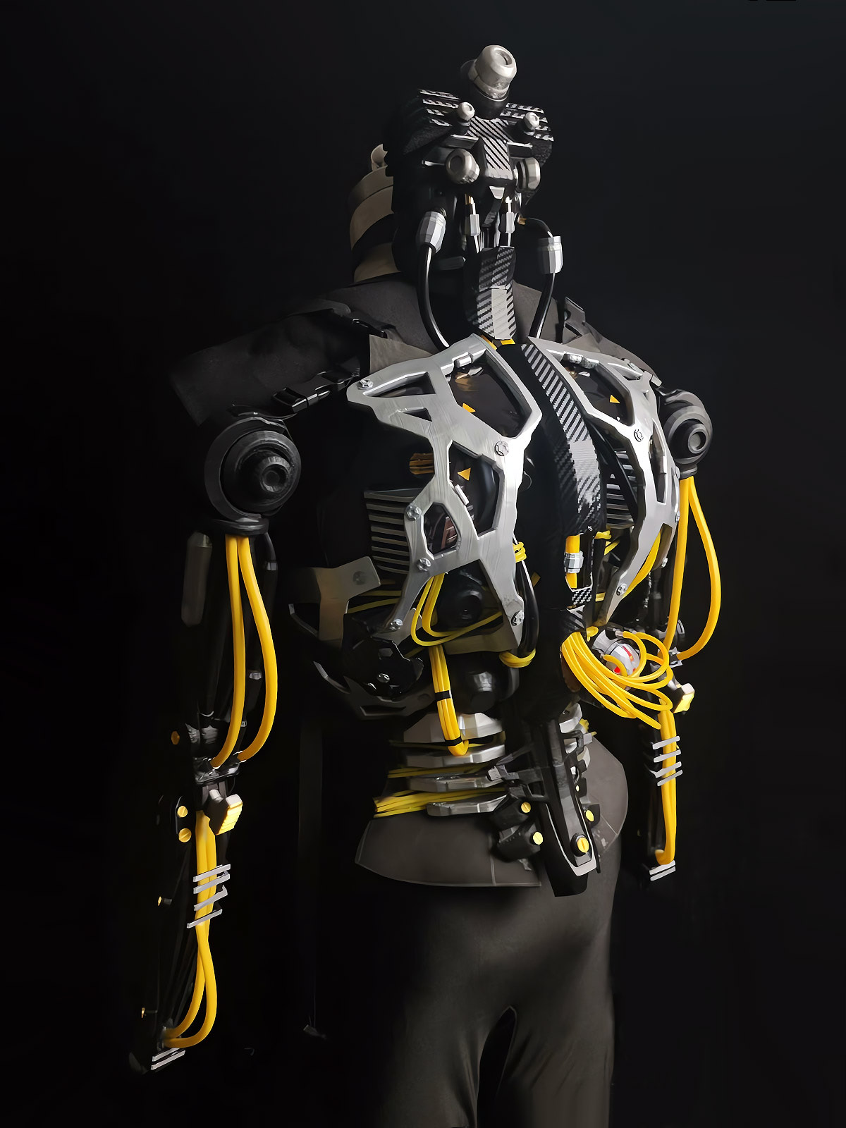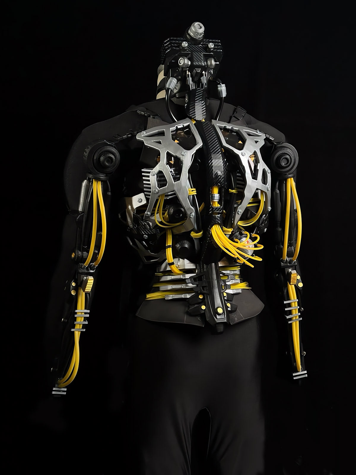 Limited Production Cyberpunk Wearable Exoskeleton with arm extensions inspired by the aesthetics of Cyberpunk 2077: Phantom Liberty Songbird's Cyberware.