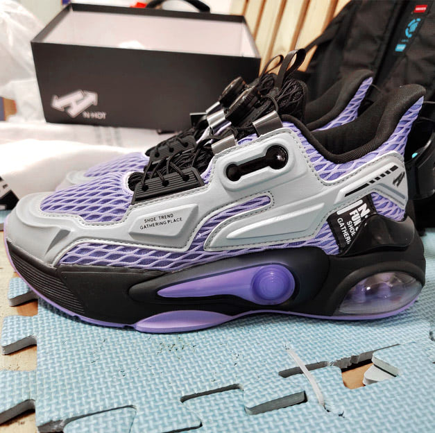 This innovation not only streamlines usability but also contributes to the futuristic aesthetic, aligning perfectly with the shoeâs cyberpunk theme.