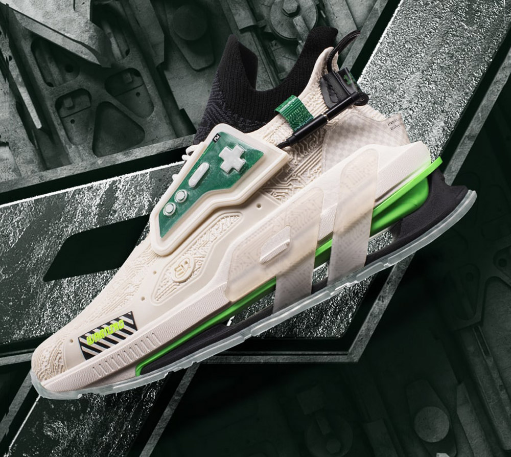 Player One with design language inspired by retro video game culture and featuring an electronic circuit board sole design