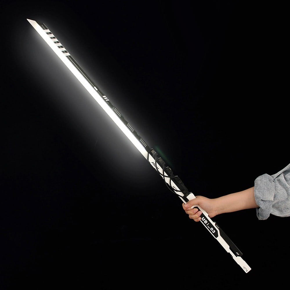 Fully handcrafted katana prop featuring a led light blade in red, white, blue or yellow color powered by rechargeable battery.
