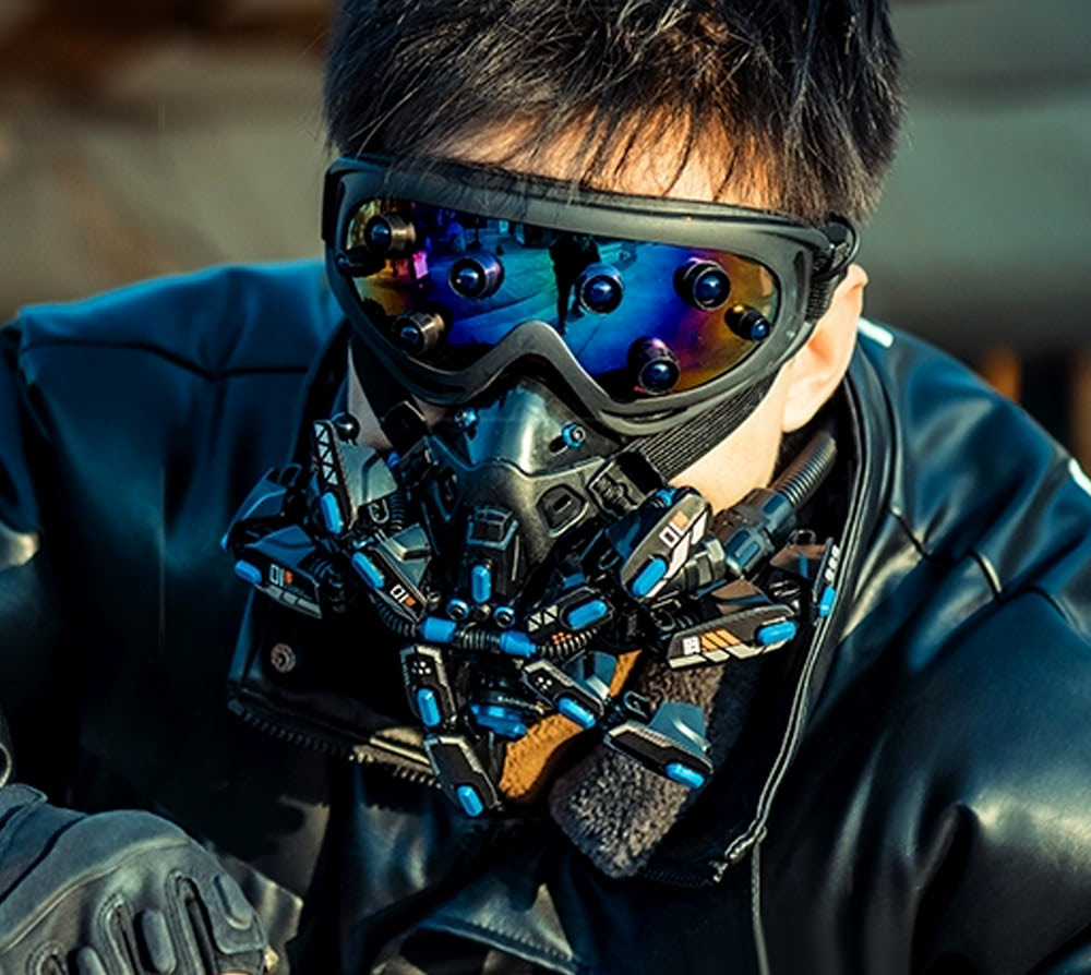 Individually crafted, this custom respirator is a wearable art piece that can be used as a cyberpunk fashion accessory or as part of your cosplay outfit.