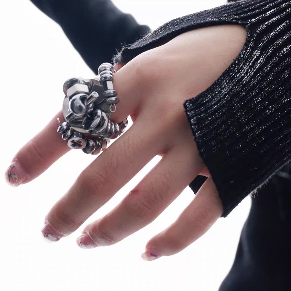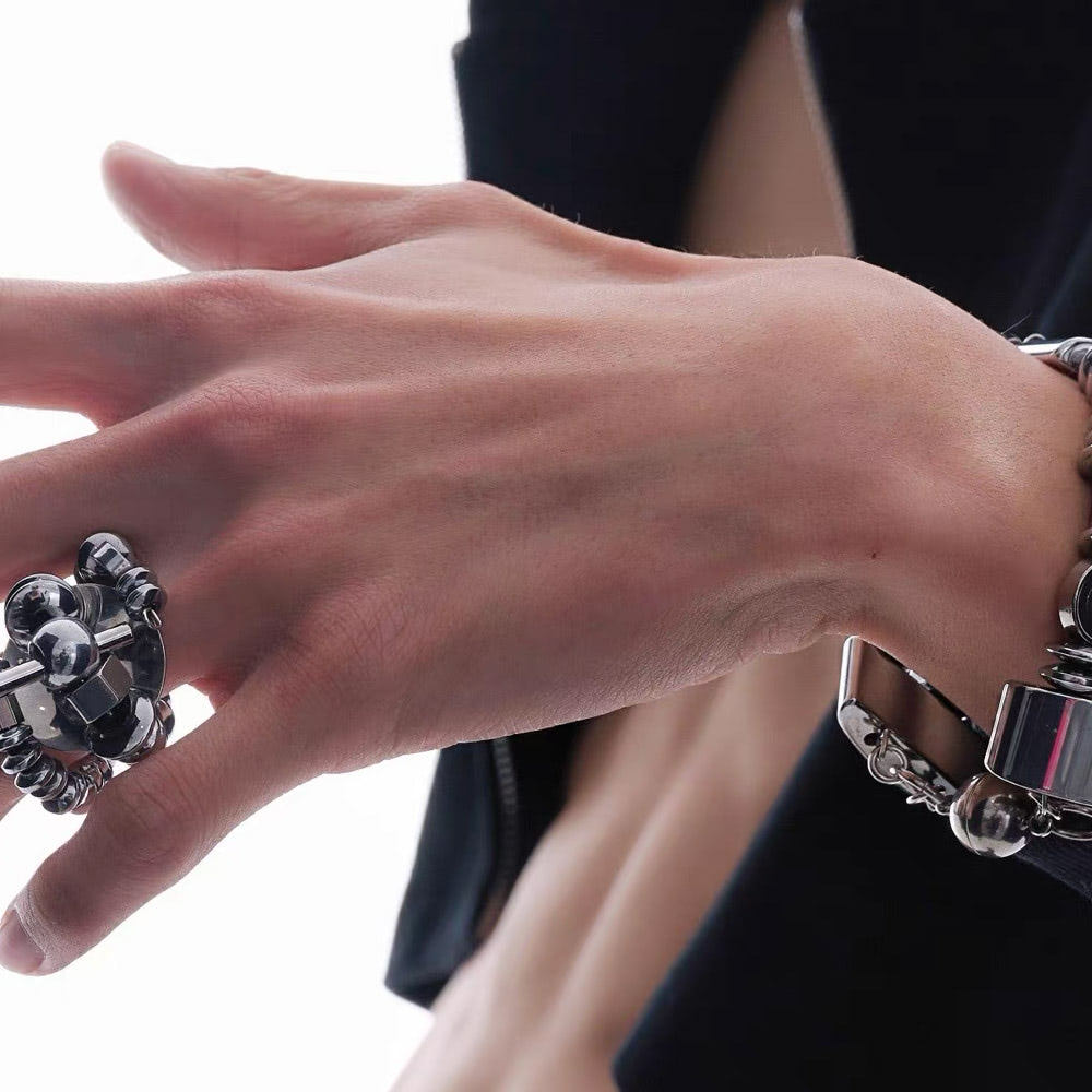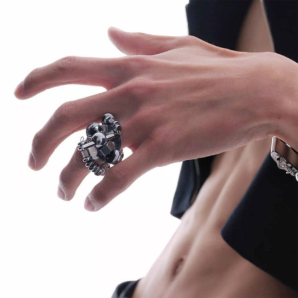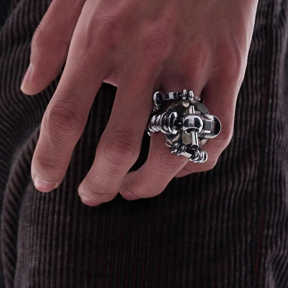 The Mechanical Ring ("Mad Max" Series) is an exquisite wearable piece that balances raw industrial aesthetics with refined craftsmanship.