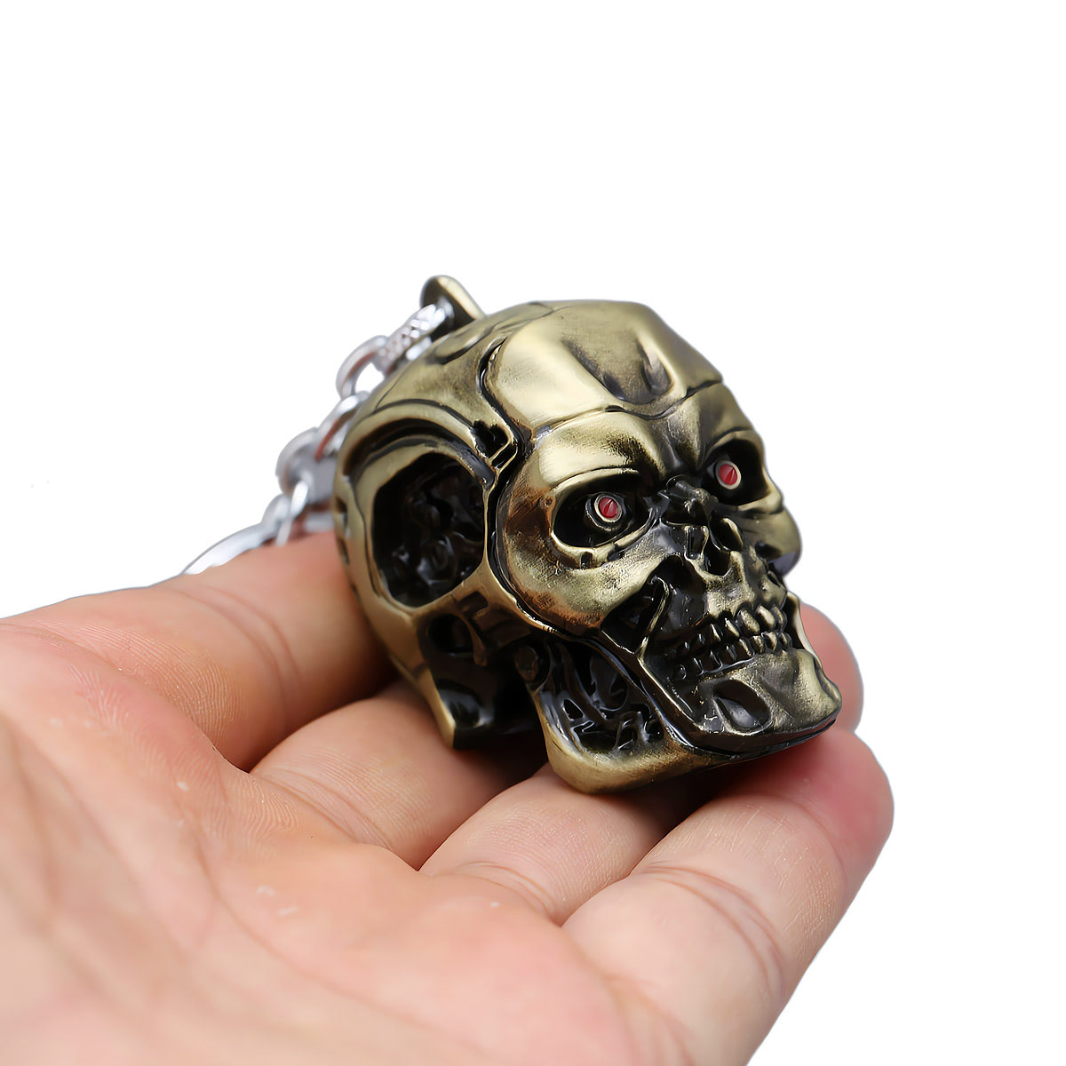 Beautifully crafted keychain pendant featuring a detailed Terminator T800 cyborg head sculpt with red eyes.