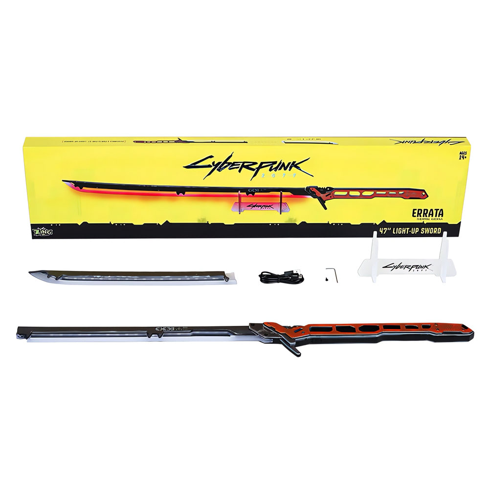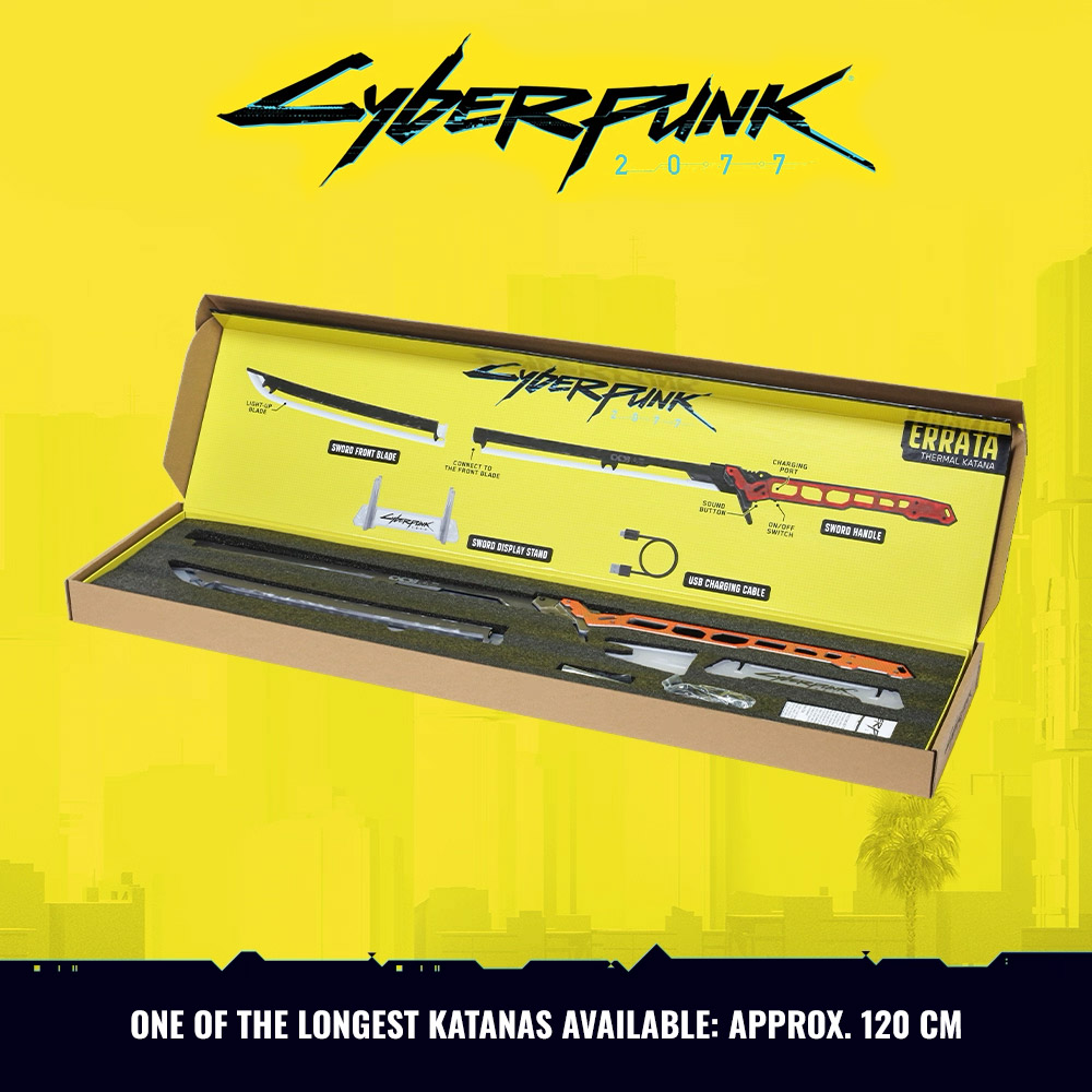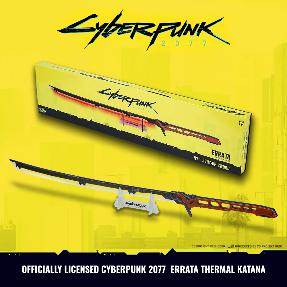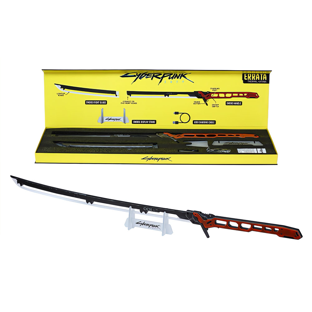 Official-licensed Cyberpunk 2077 Errata Thermal Katana peripheral featuring an animated light-up blade and sound effects.
