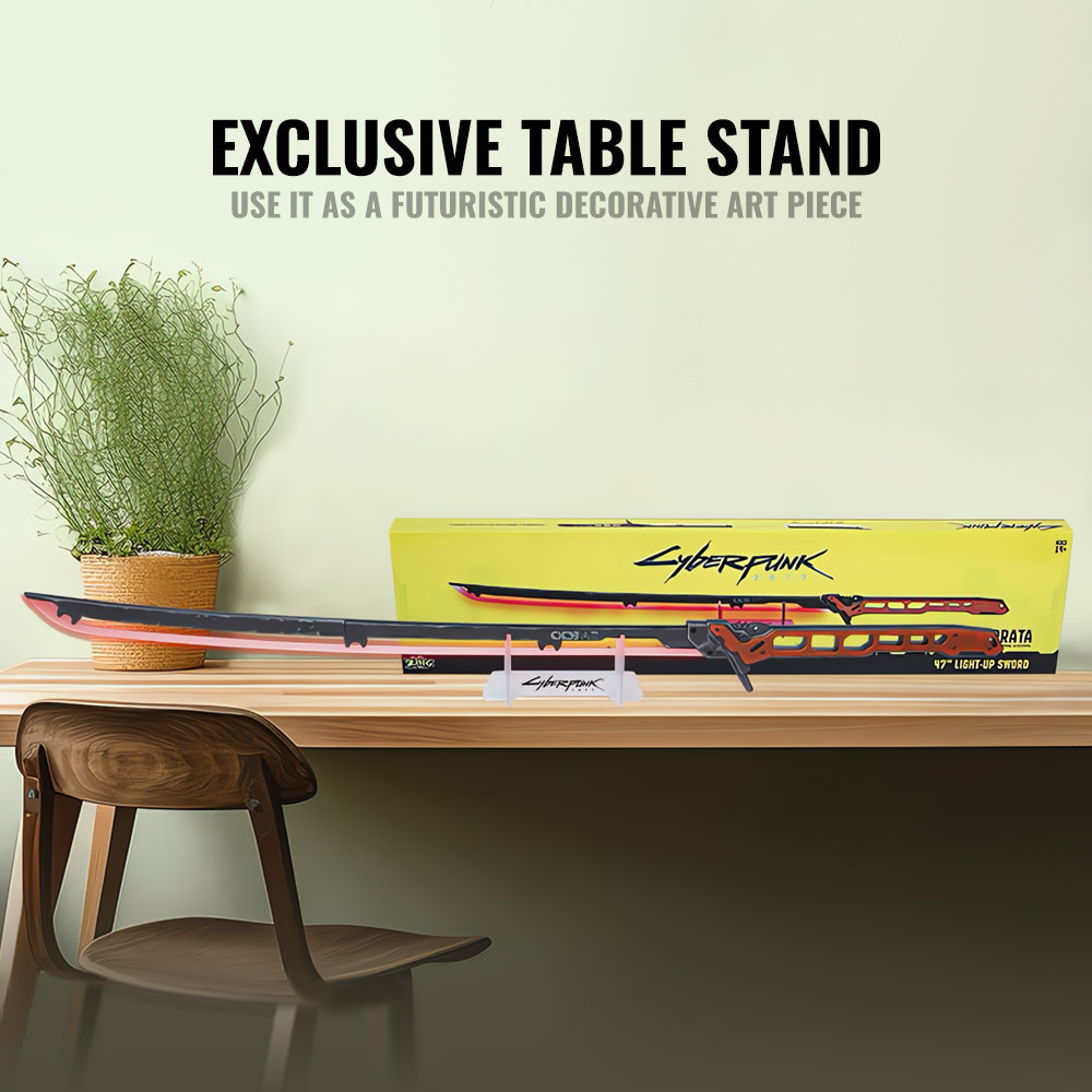 The table stand shown in the photos is also included so you can proudly rest or display your Errata Katana as a decorative art piece for your room or desk.