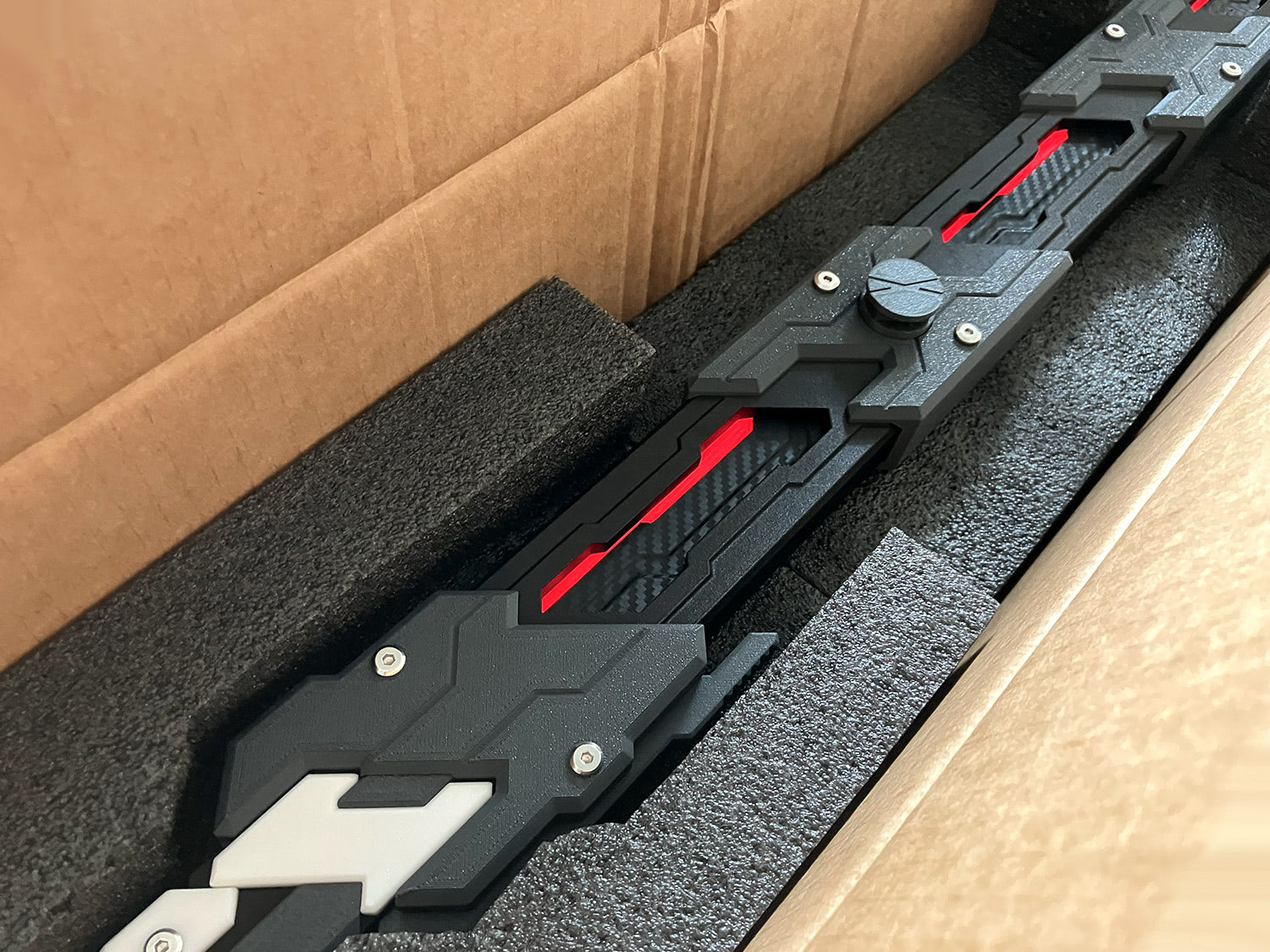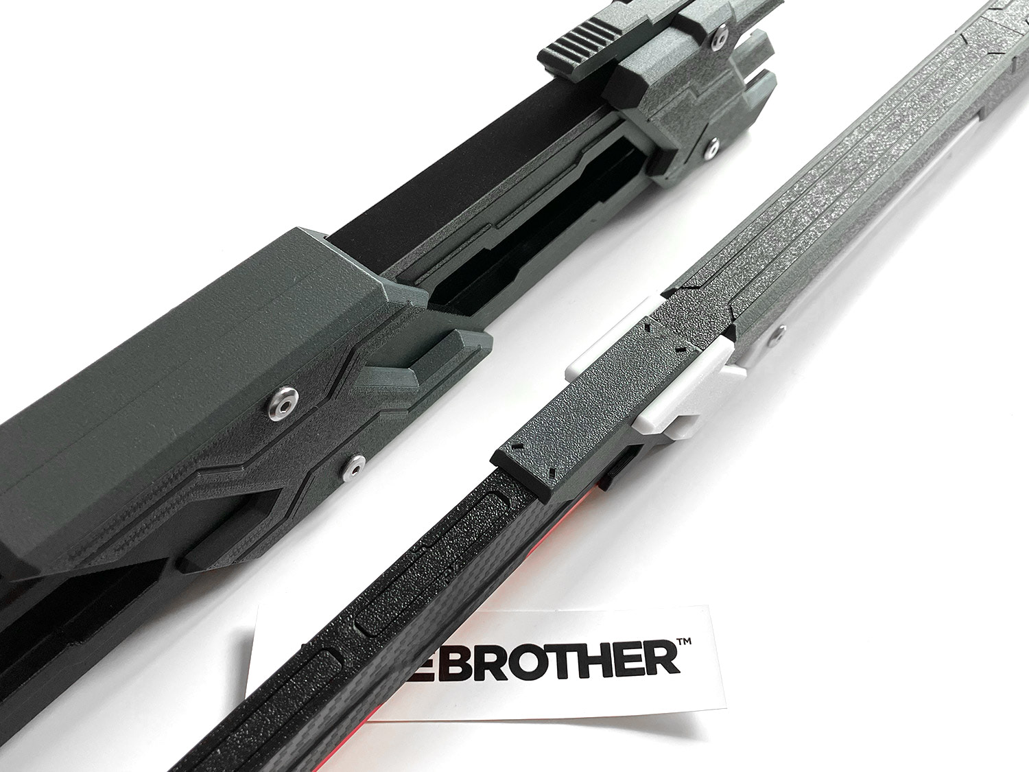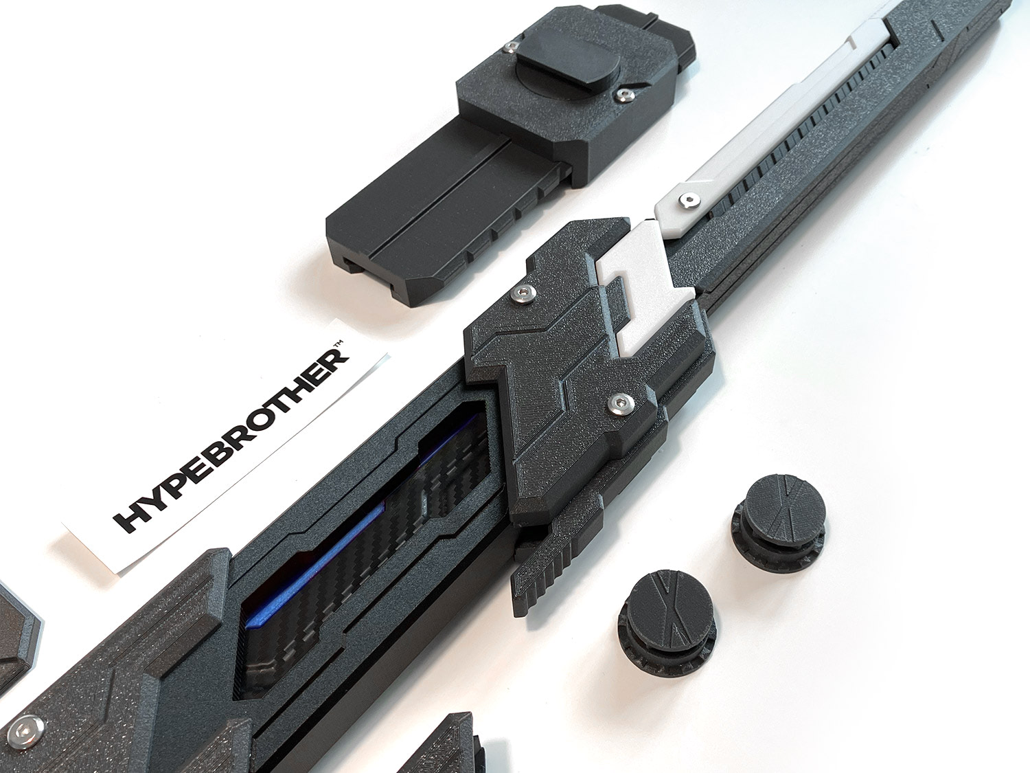 Cyberpunk Katana with automatic (catapult-style) ejection mechanism, magnetic blade touch control and belt attachment dock.