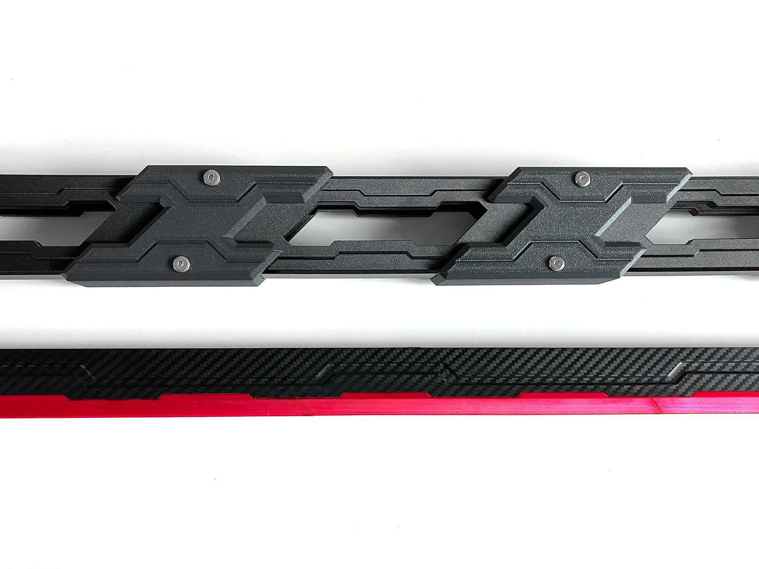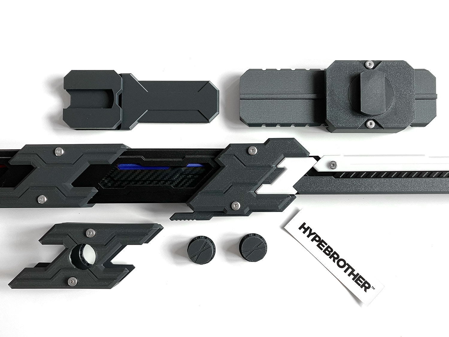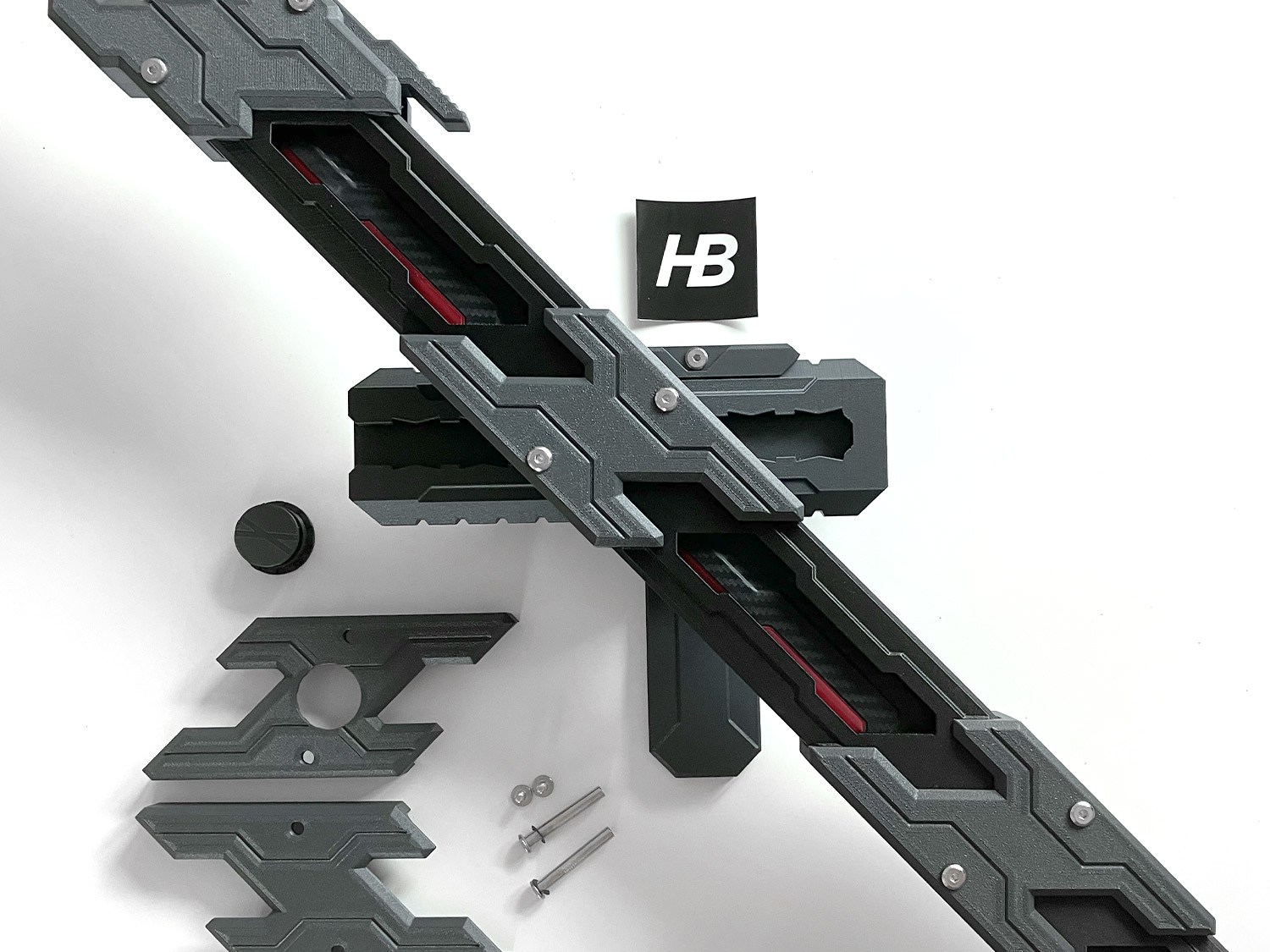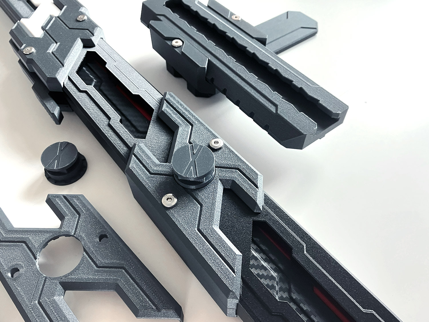 Cyberpunk Katana with automatic (catapult-style) ejection mechanism, magnetic blade touch control and belt attachment dock.