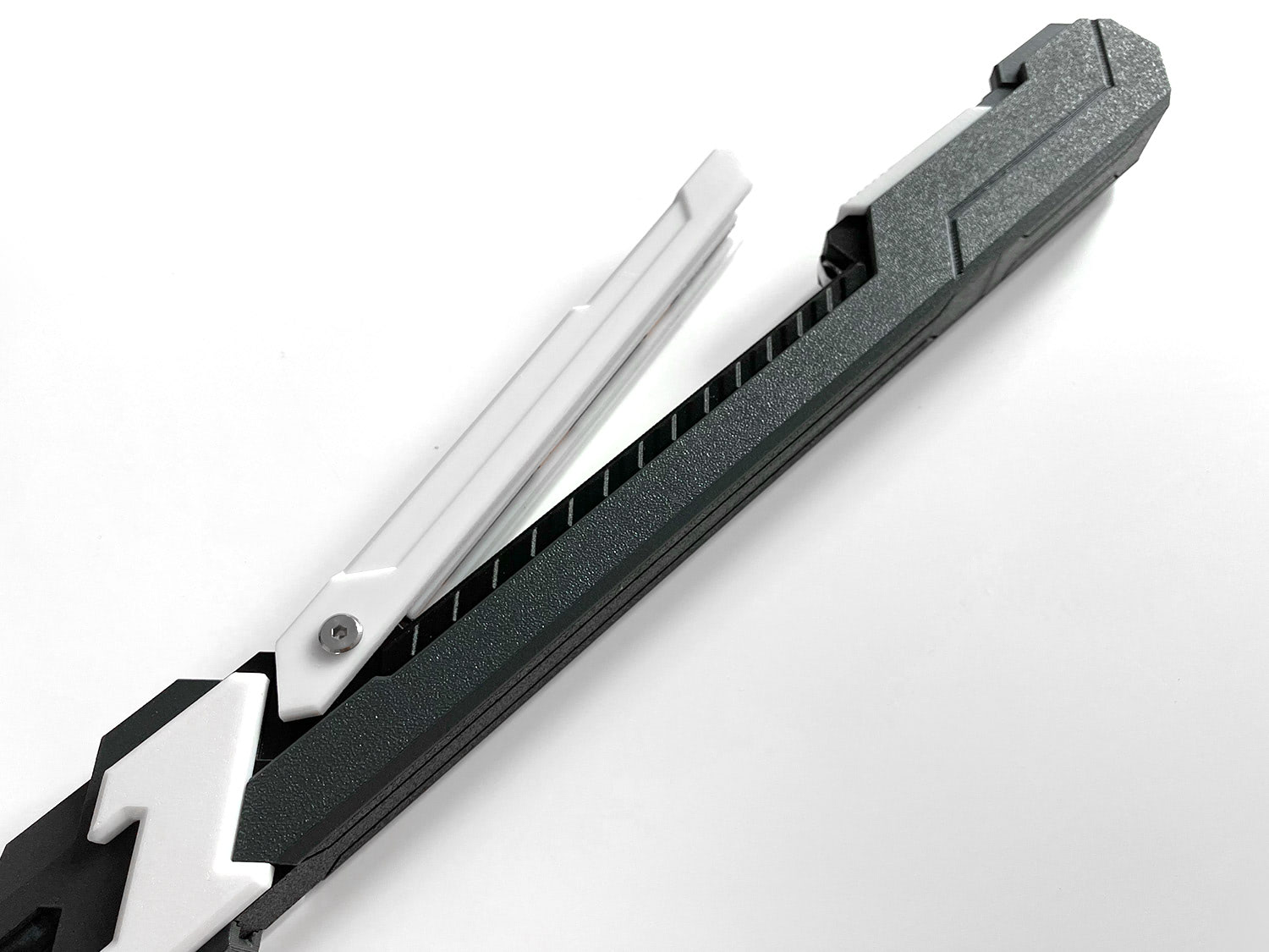 It features a cool “catapult-style” ejection mechanism that allows you to quickly eject the katana out of the sheath by the press of a button.