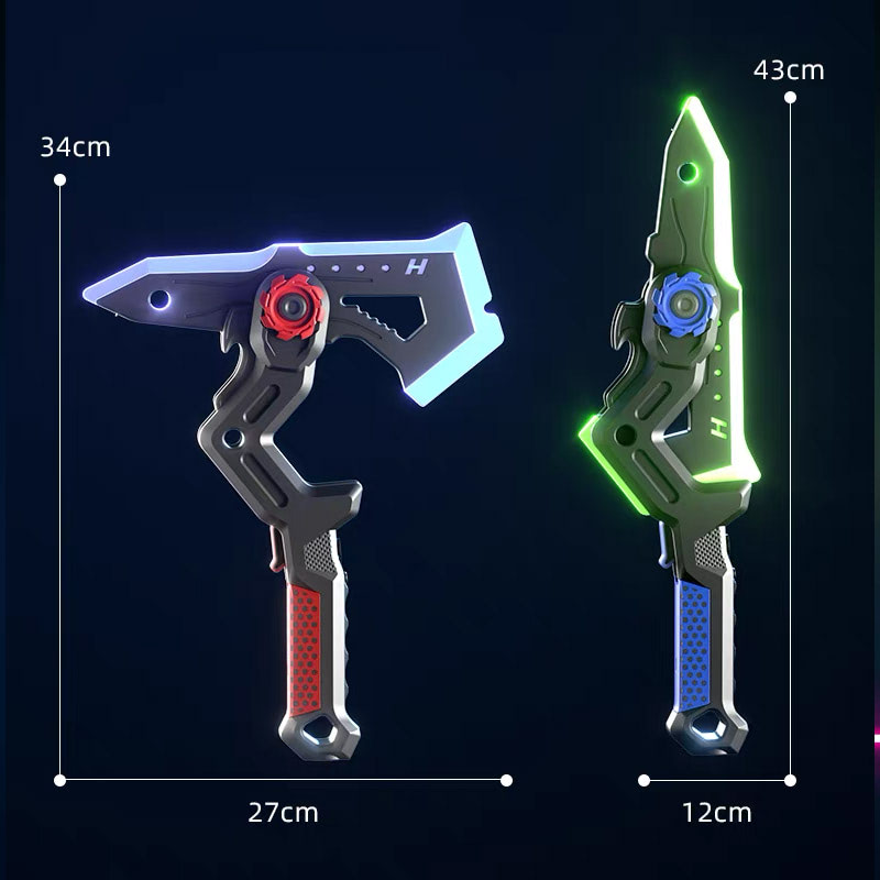 At the heart of its design lies intelligent interaction. The grip is equipped with vibration sensors that instantly trigger sound and light reactions, ensuring that every movement feels alive. Whether youâre striking, clashing, or simply switching forms, the Dual Axe Blade responds in real time, creating a seamless connection between you and your weapon.