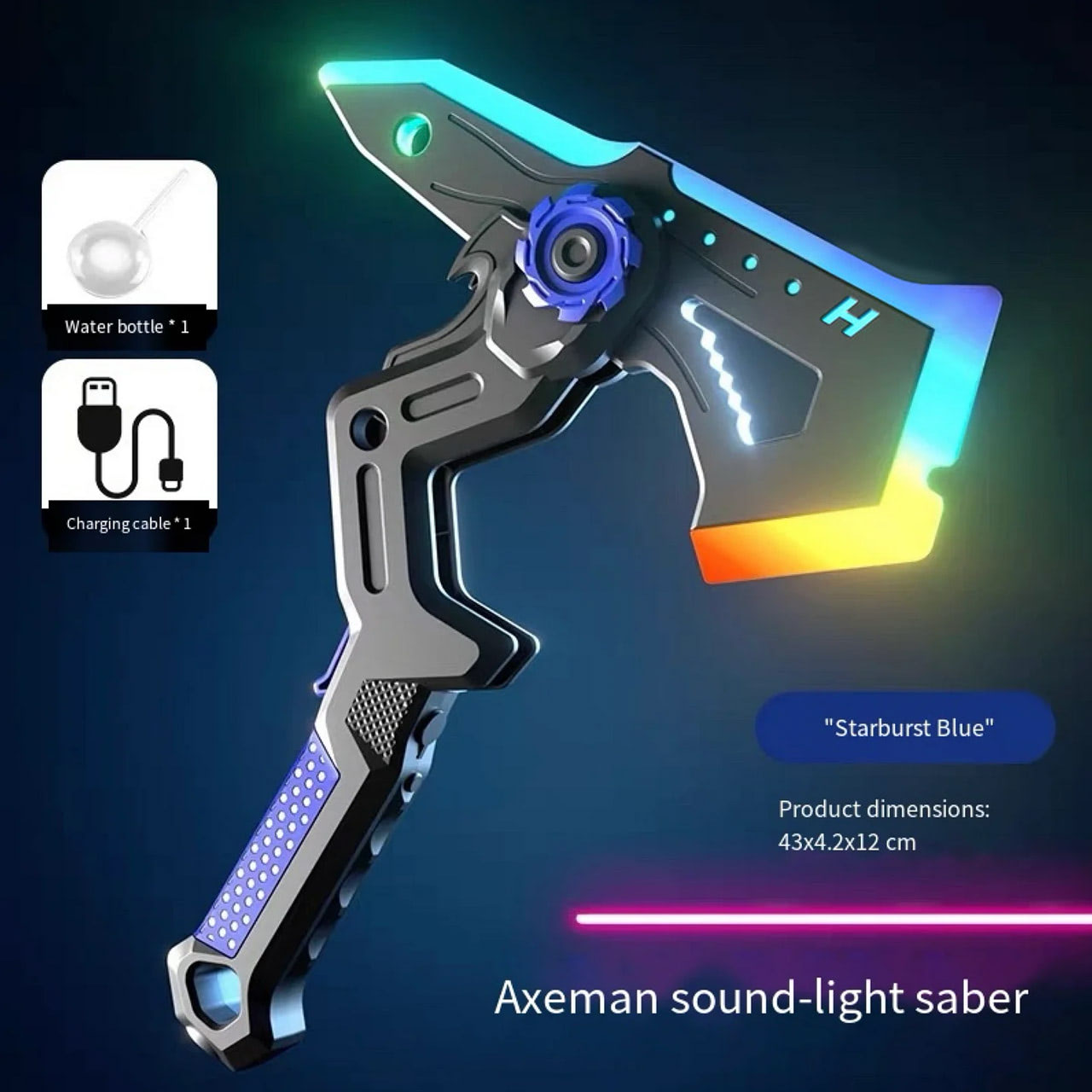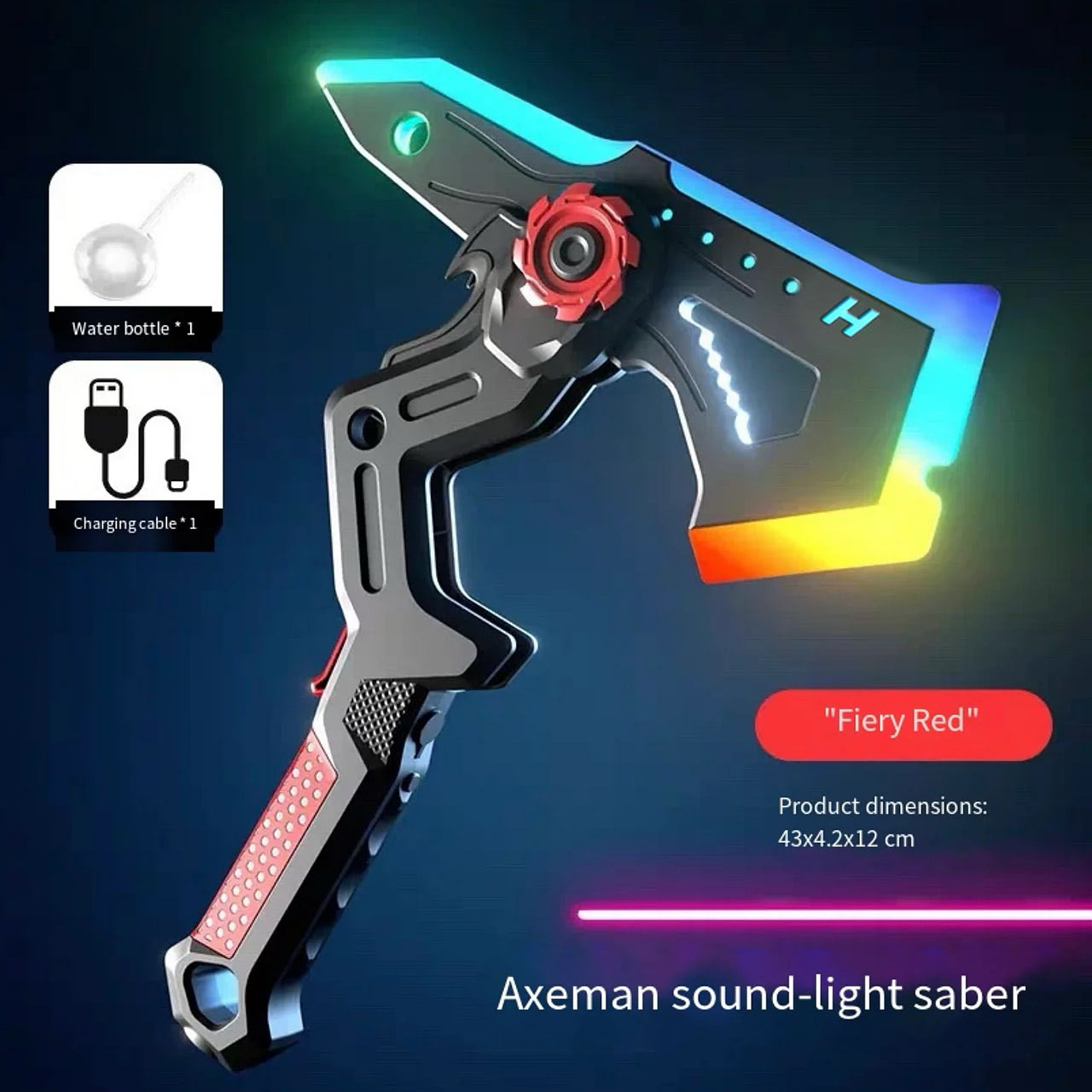 This 2-in-1 axe and blade hybrid brings futuristic combat to life with dazzling RGB LED illumination, immersive sound effects, and a smoke spray system that transforms every swing into a cinematic moment. Itâs designed for those who crave intensity, style, and the thrill of battle in one electrifying package.