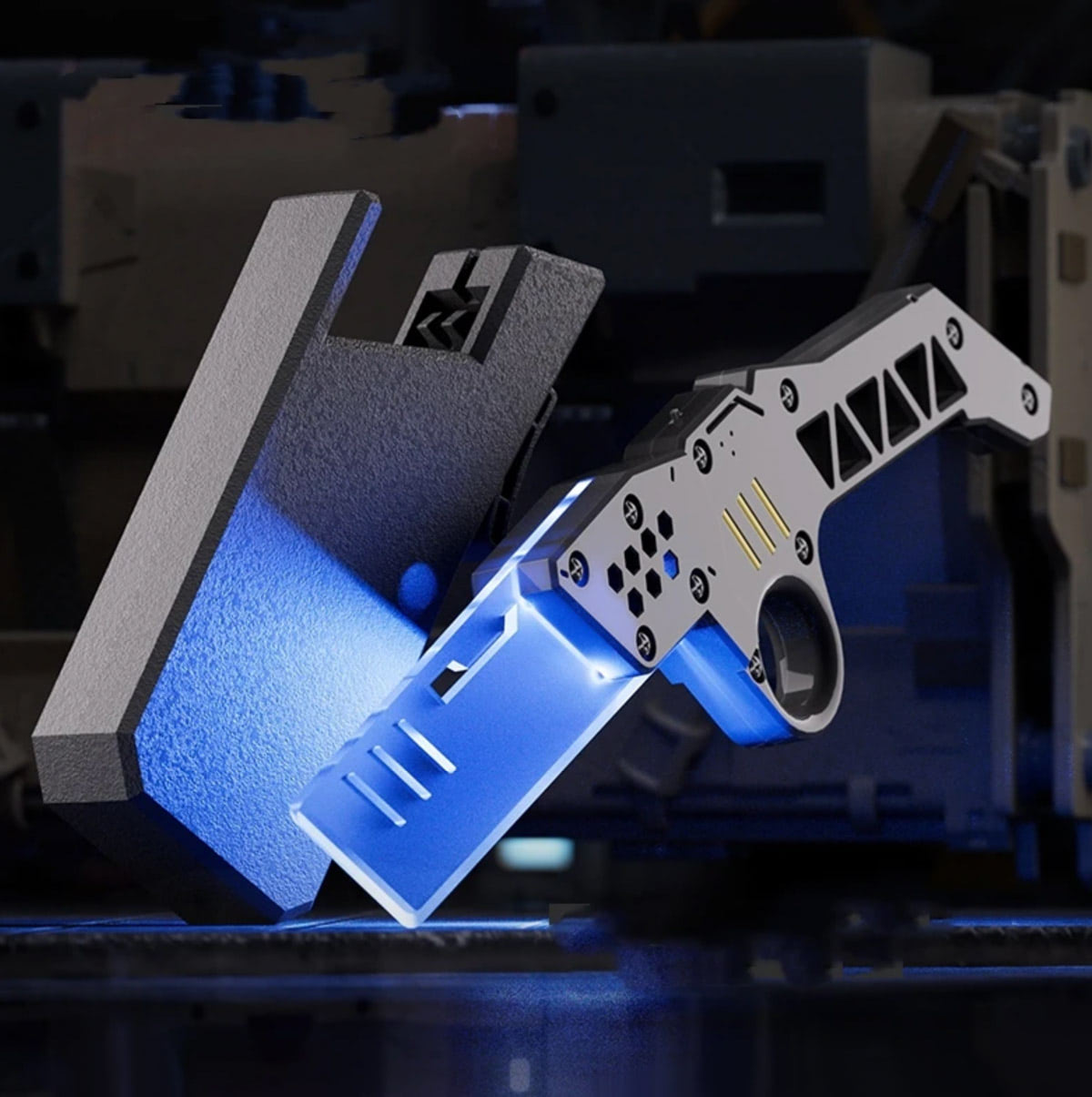 Inspired by cyberpunk aesthetics and karambit knives, this futuristic blade comes in four beautiful color schemes and can be used by all ages since it is 100% safe for kids and children.