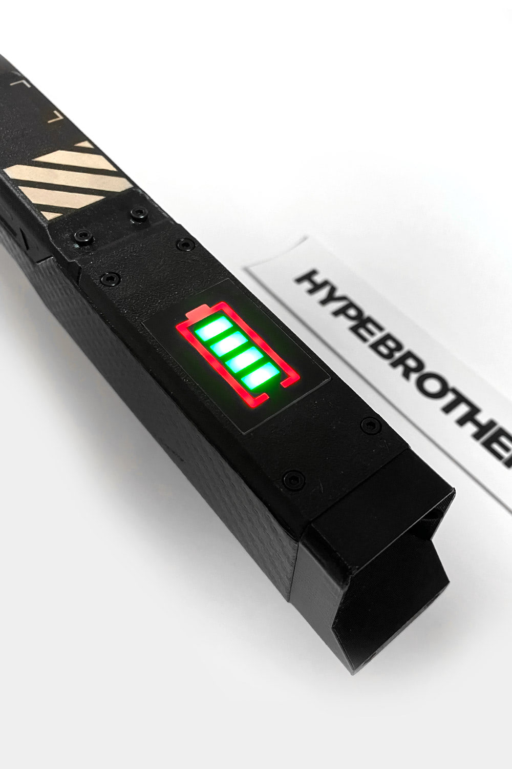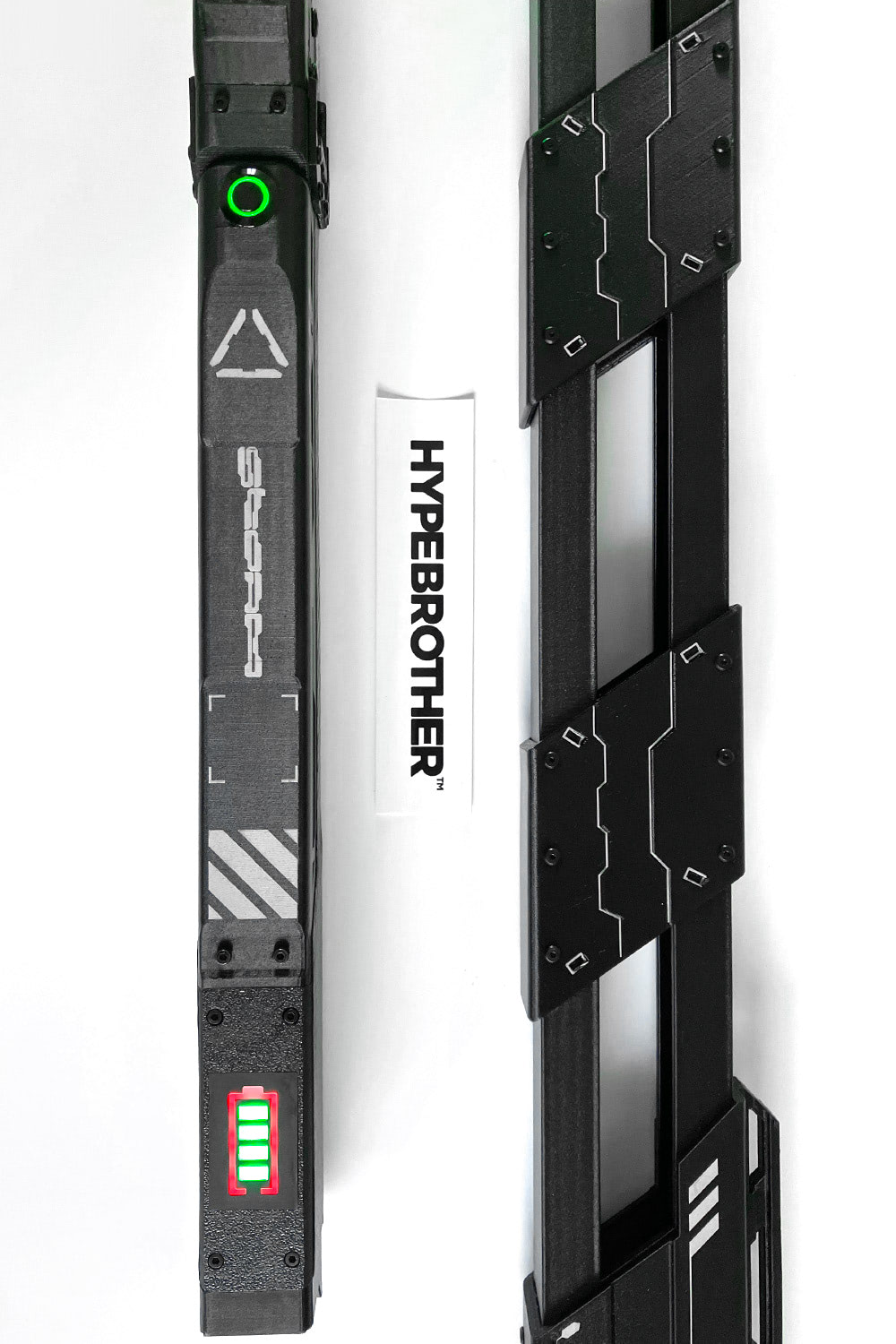 The RGB blade is animated and can be wirelessly controlled via Bluetooth using the mobile app. You can choose animated effects that can be manually set using the app or animated by music/sound.