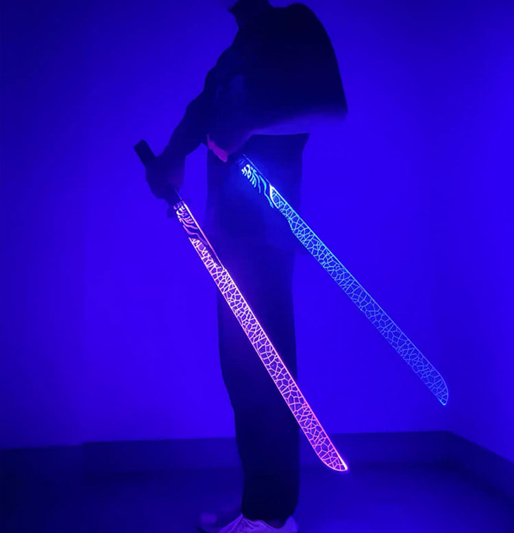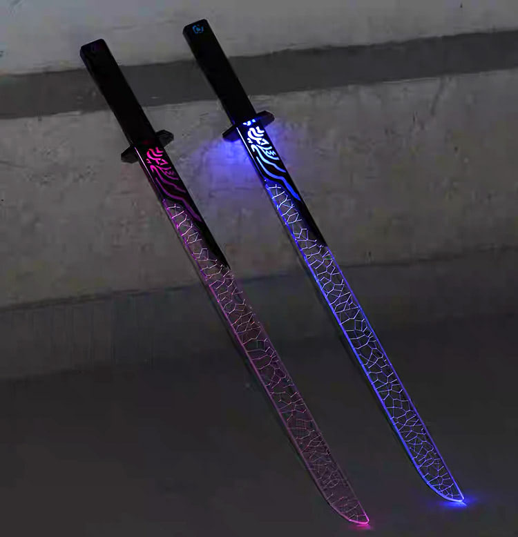 The color of the light blade is fixed, but it is available in either blue or purple.