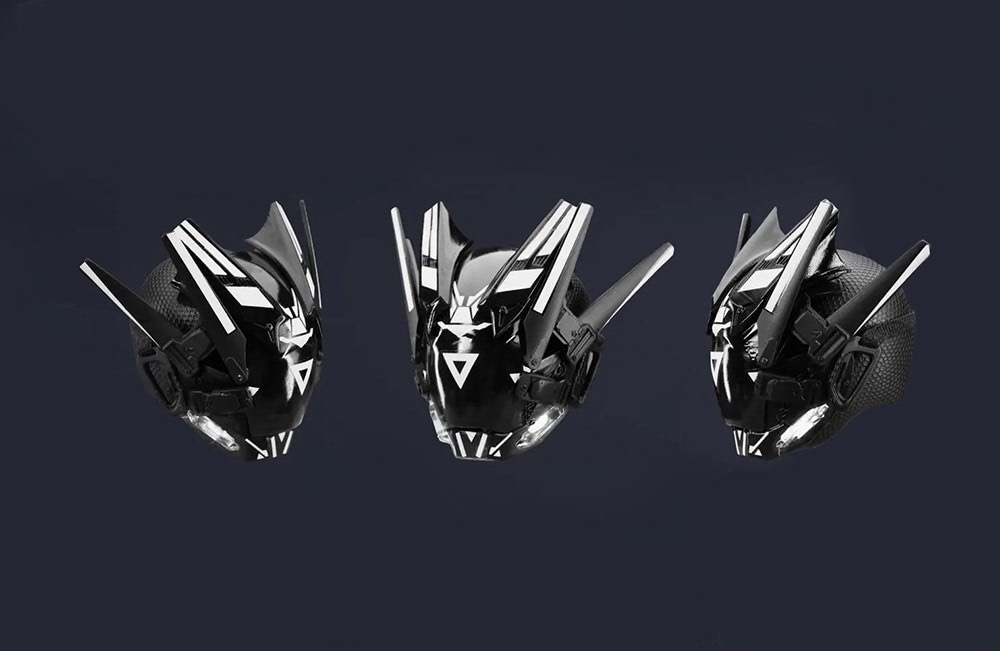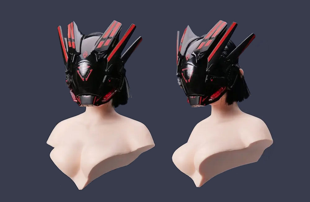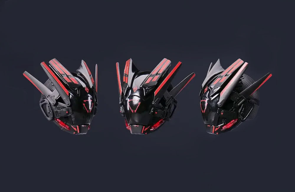 A perfect copy of the 1:1 real life sized cyberpunk masks, these miniature masks come complete with all the cool details, decals and even LED lights.